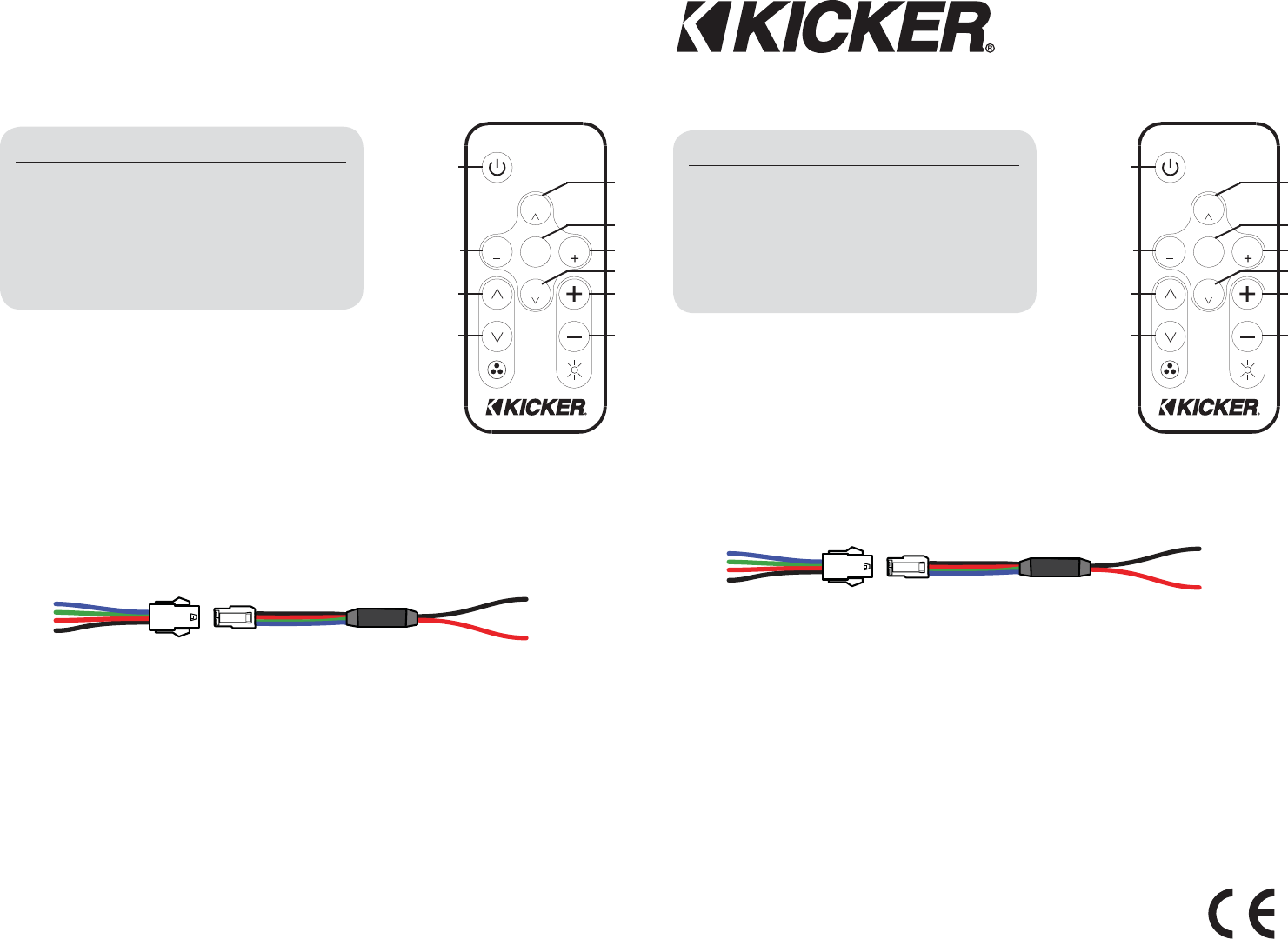 KICKER products are warranted against defects. Duration and terms of warranty depend on the laws in the country in which it was purchased. For details see your local KICKER Dealer or www.kicker.com/warranty.