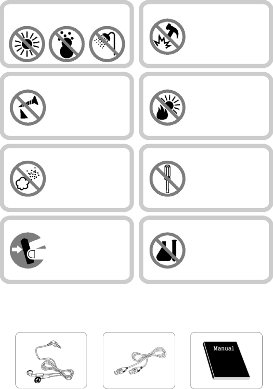 - Earphone should not be inserted into the Player when the player is connected to PC