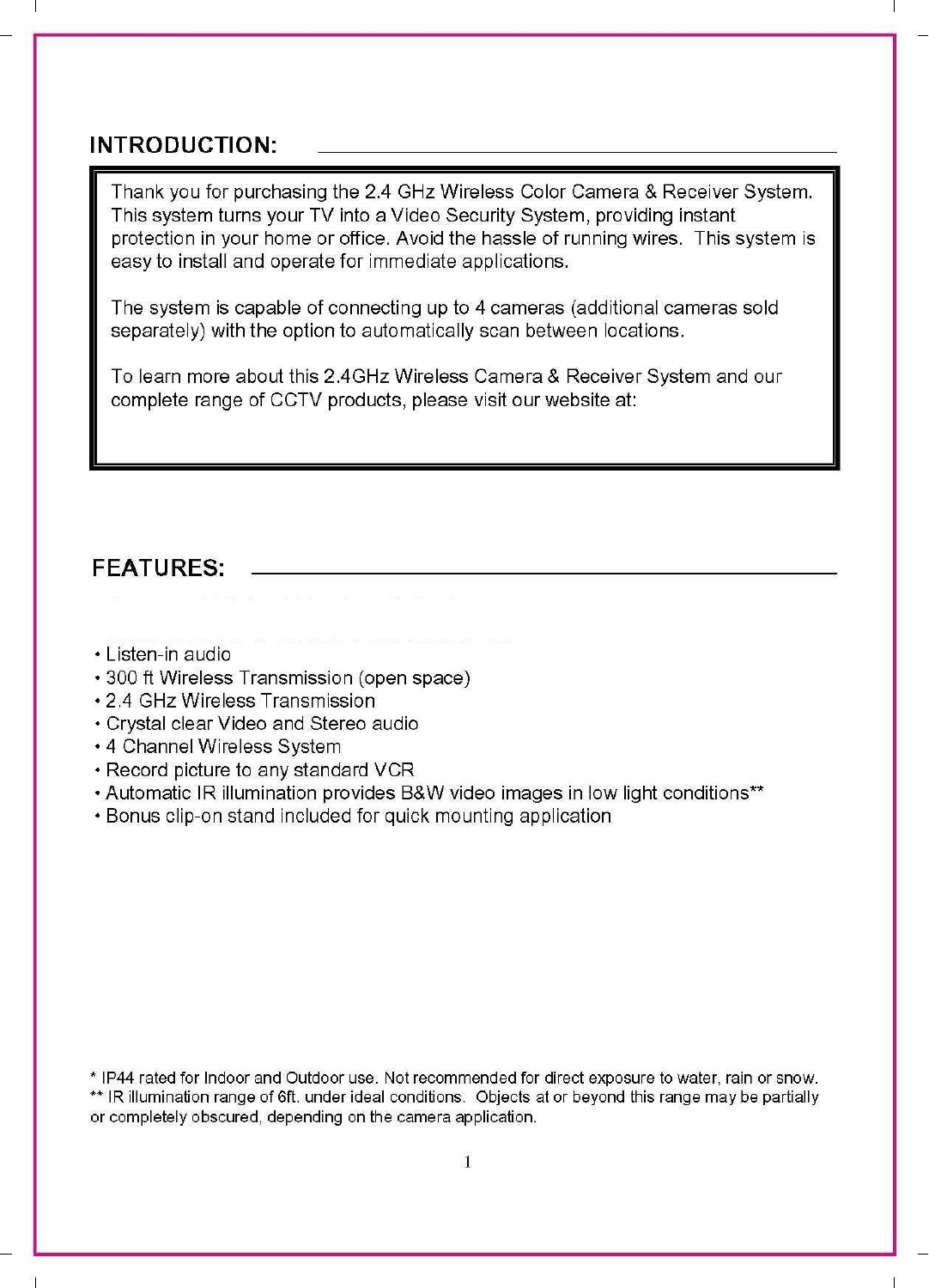 Strategic Vista Technologies Inc. 2.4G WIRELESS COLOR CMOS CAMERA Users Manual