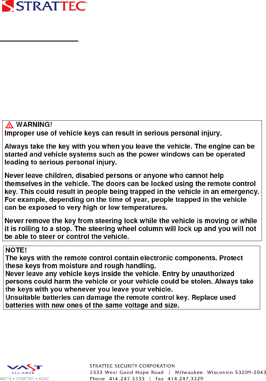 (Key less entry) applications. It must be kept away from the reach of children. In the