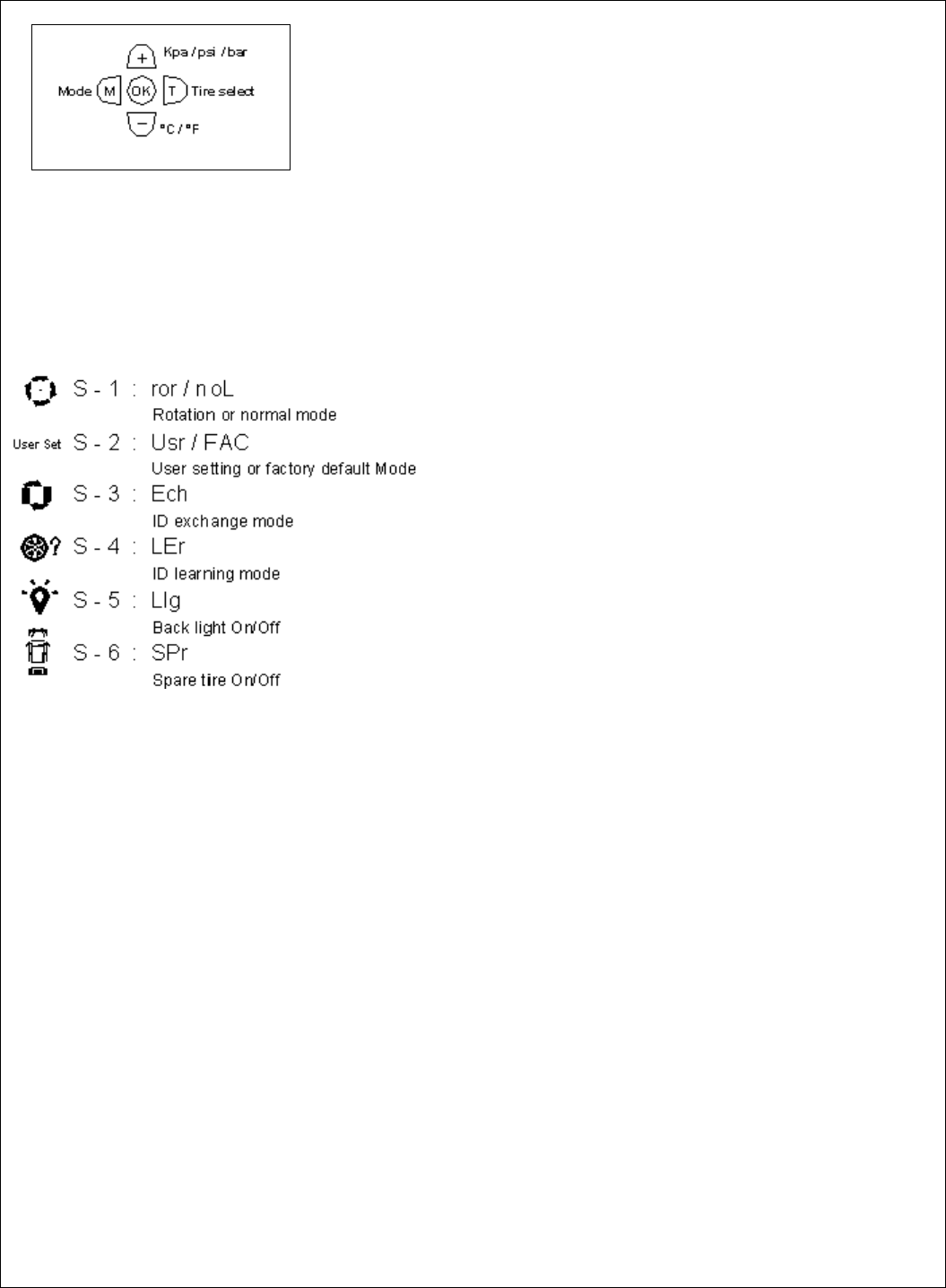 Press [OK] button to enter the Spare Tire setting Mode.