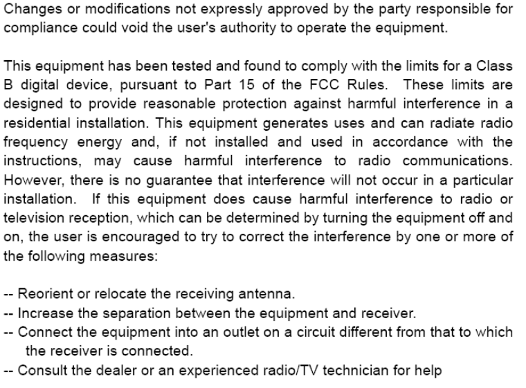 This device complies with part 15 of the FCC rules. Operation is subject to