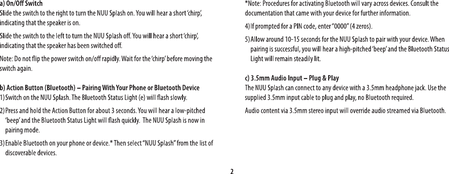 Sun Cupid (ShenZhen) Electronic Ltd. NUU Splash, SRT Splash user manual