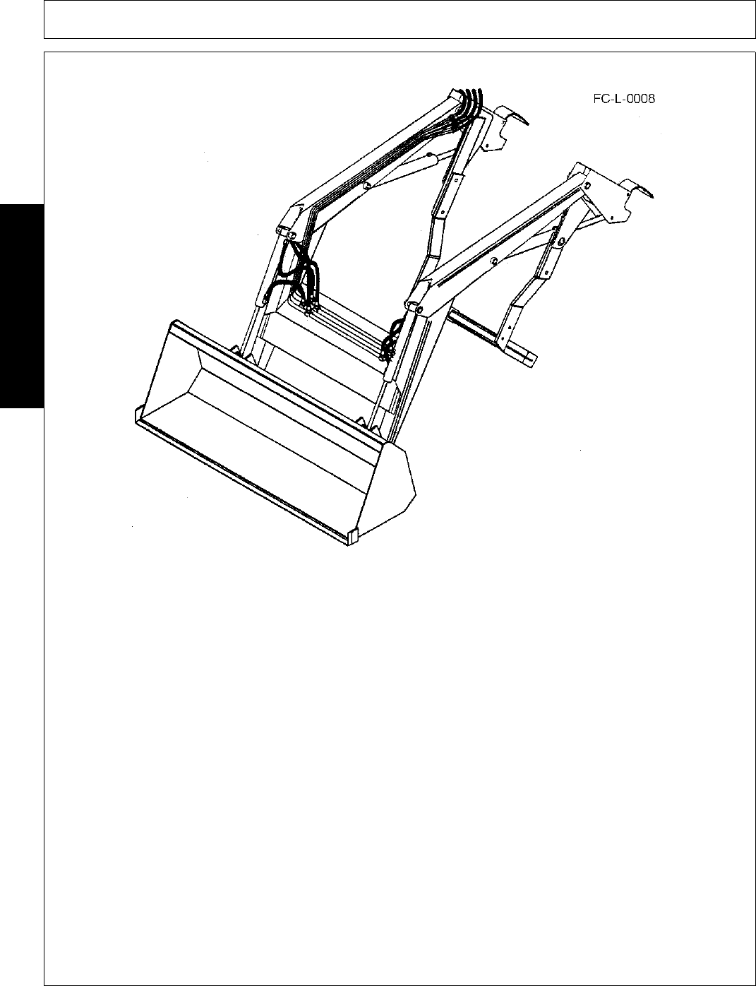 - 5. Move lift and bucket control levers back and forth several times to relieve pressure on lift and bucket cylinders. Disconnect quick couplers between loader and tractor. Hang hoses over loader side frame upright for storage. Make sure male quick co...