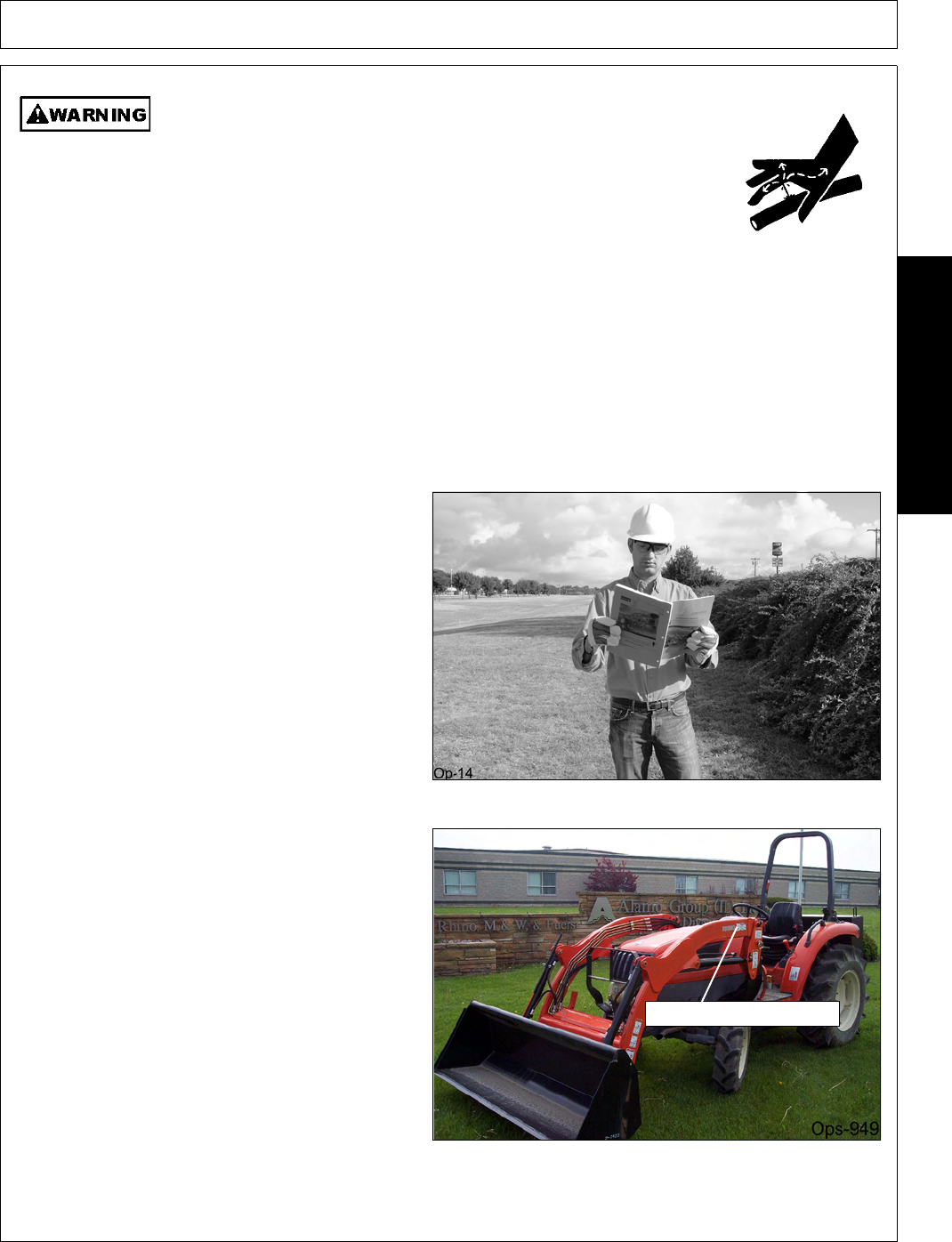 - 8. Operating the Tractor and Loader