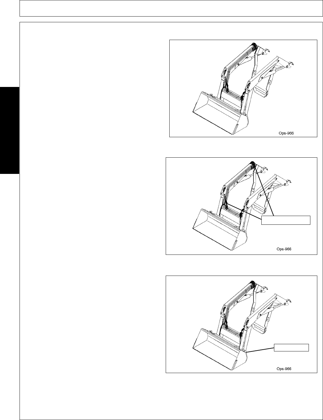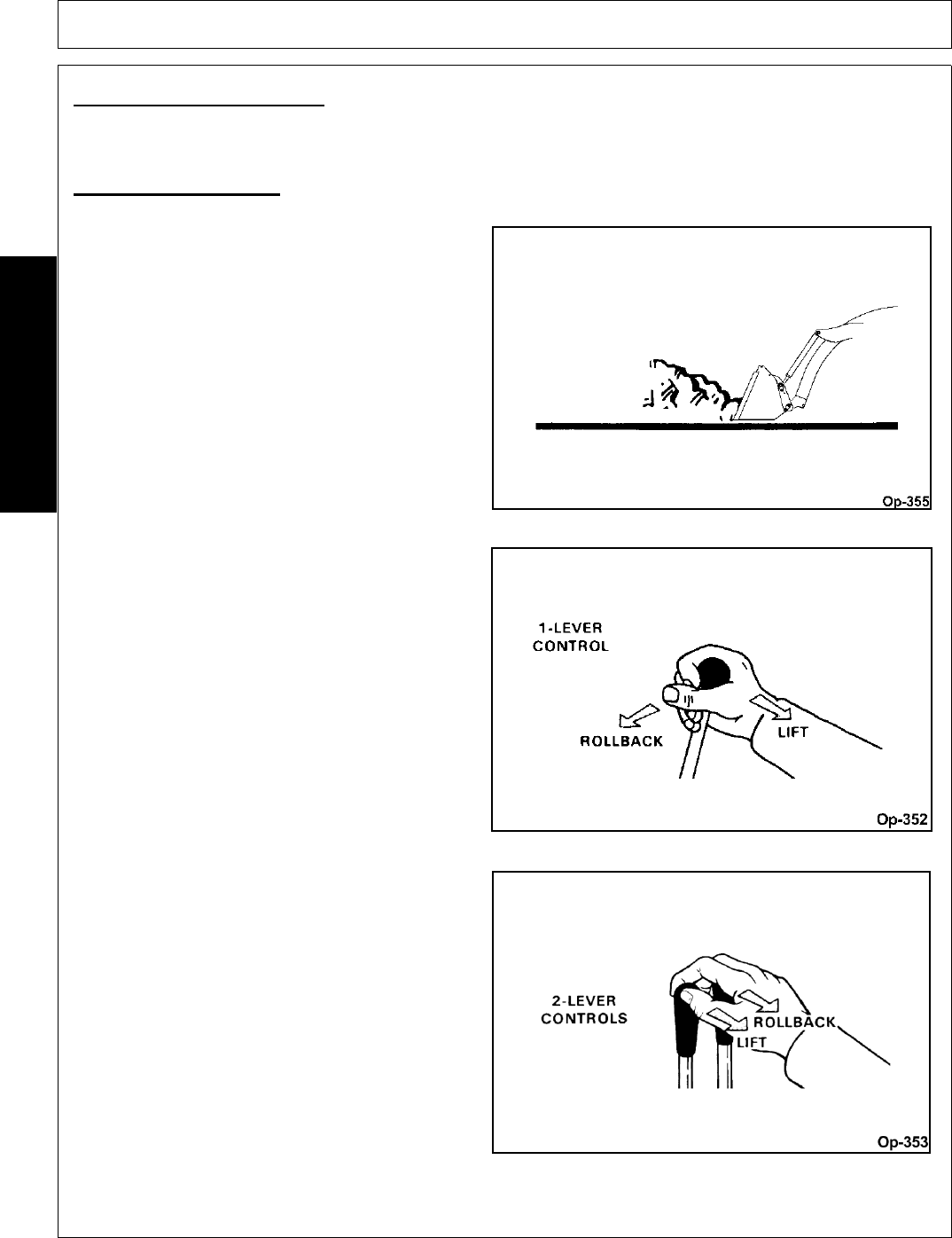 - 2. Level and lower bucket to ground. Engage tractor brakes and shut off tractor engine. Move lift control lever back and forth several times to relieve pressure in lift cylinders.