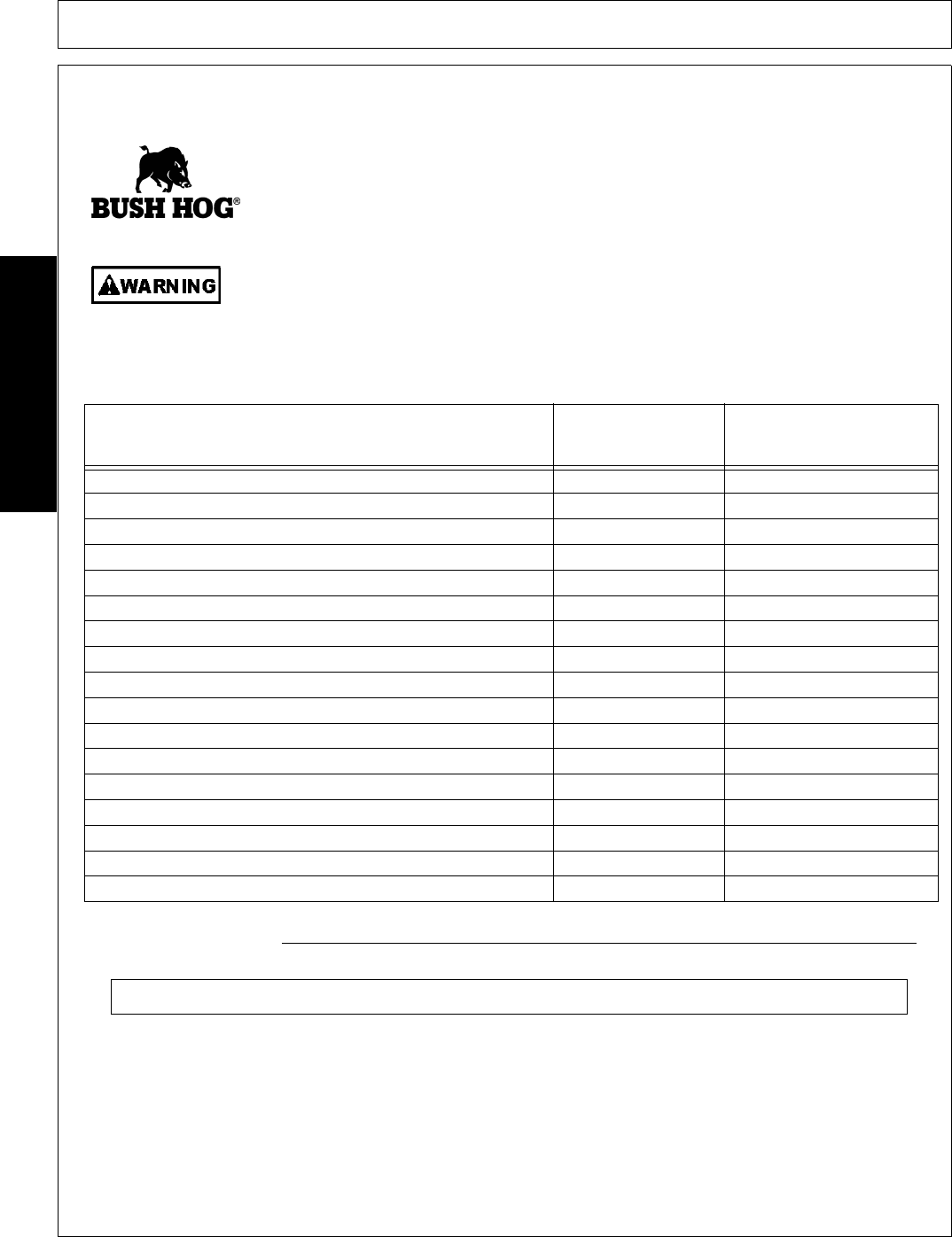 NO EMPLOYEE OR REPRESENTATIVE OF BUSH HOG IS AUTHORIZED TO CHANGE THIS LIMITED