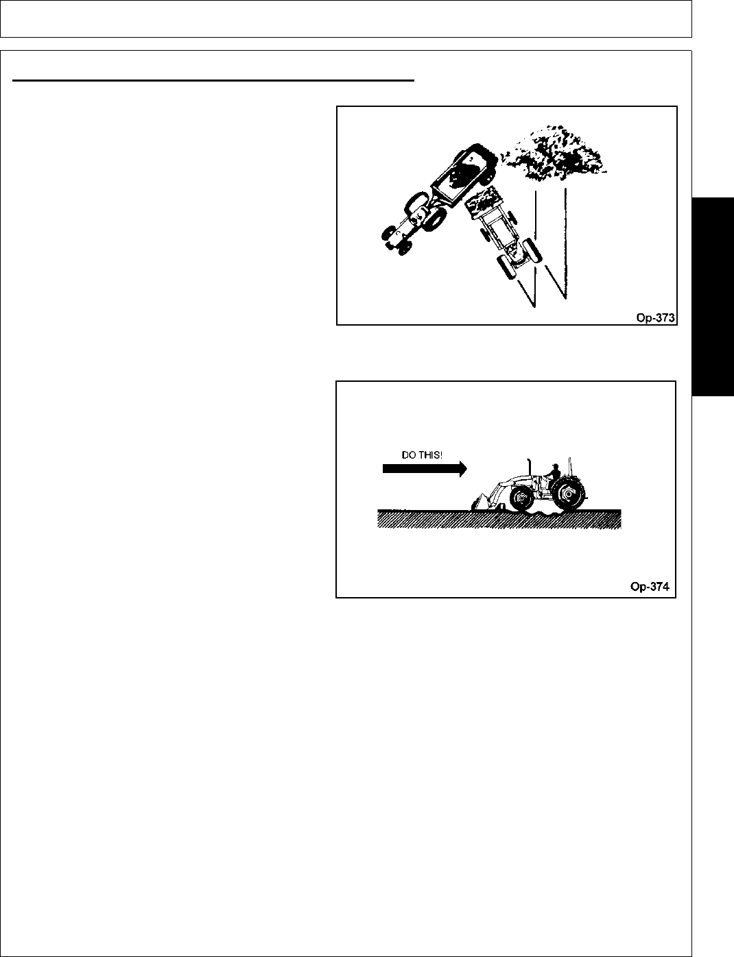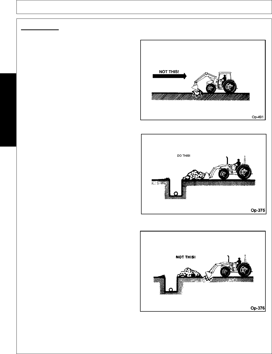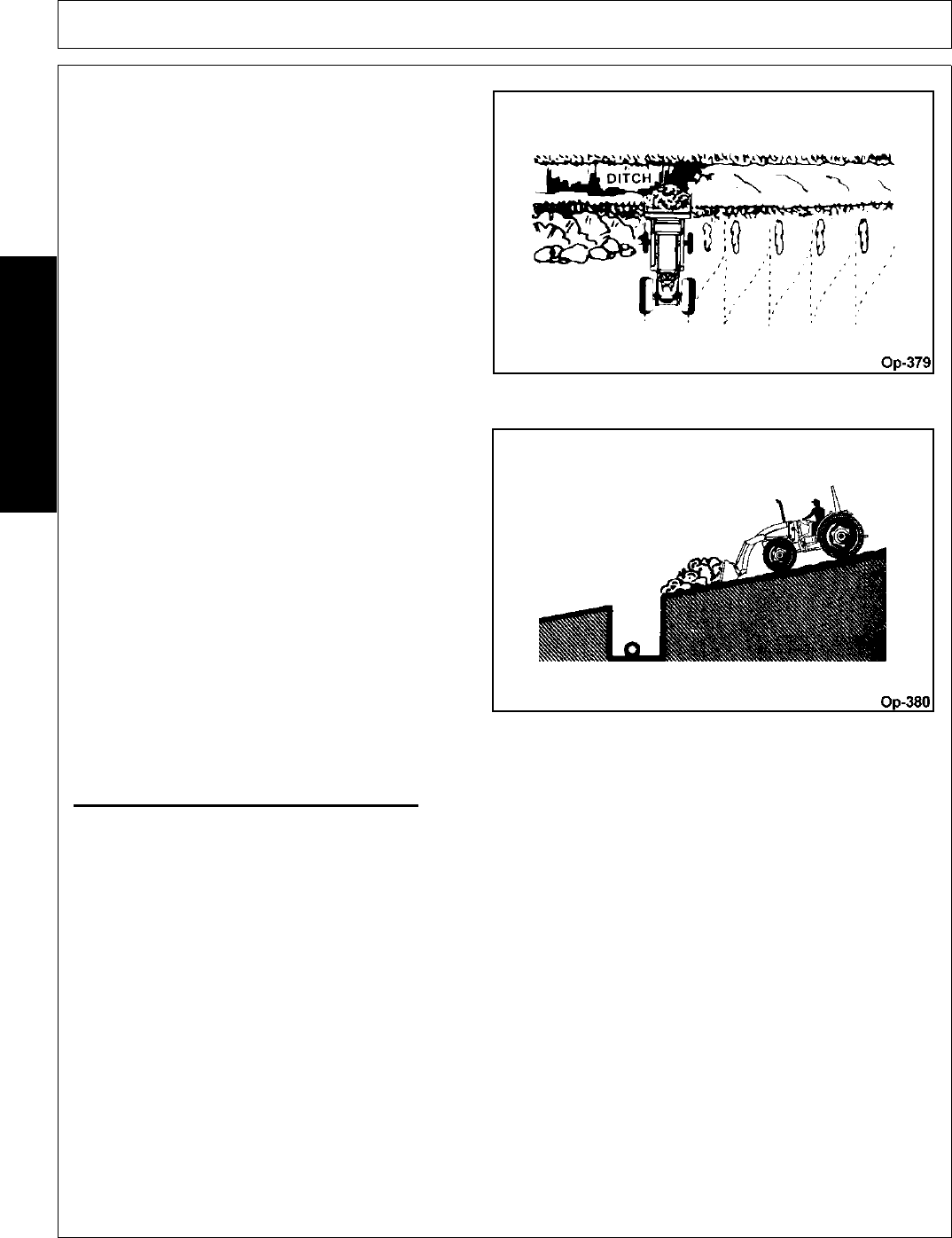 2. Where possible, avoid operating the tractor near ditches, embankments, and holes.