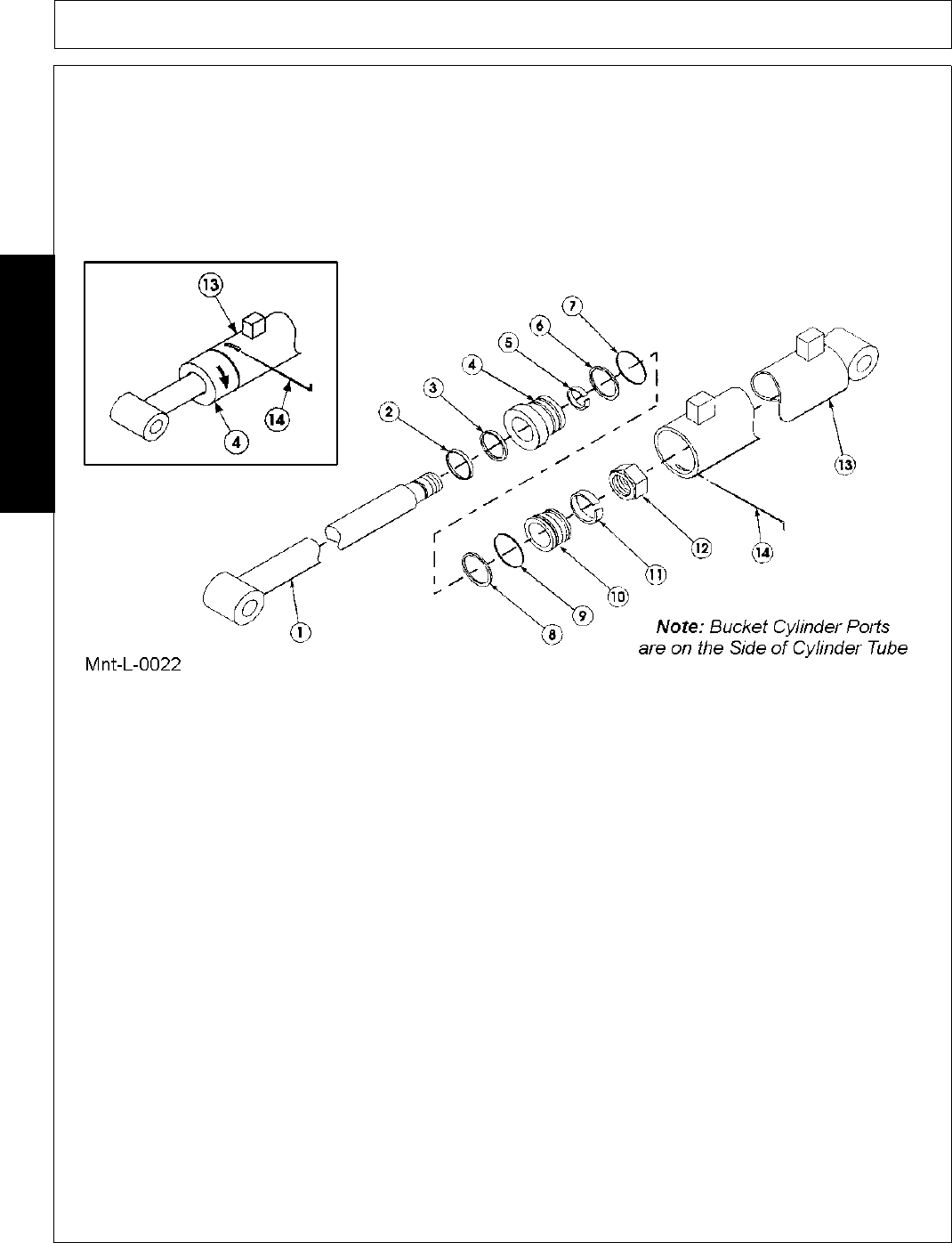 - 3. Set bucket level on ground and adjust level guide tube along bucket cylinder until end of guide tube is flush with end of rod.