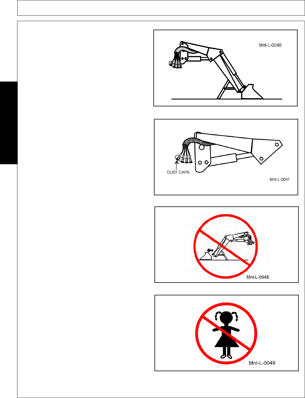 2. Place dust caps on hydraulic quick couplers.