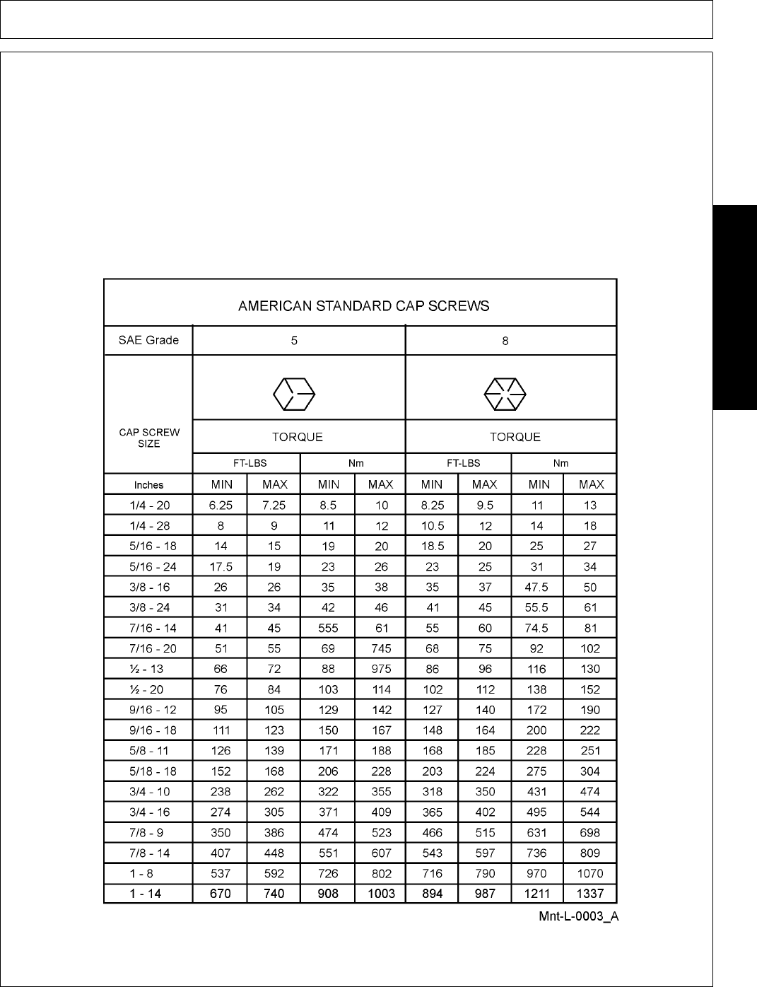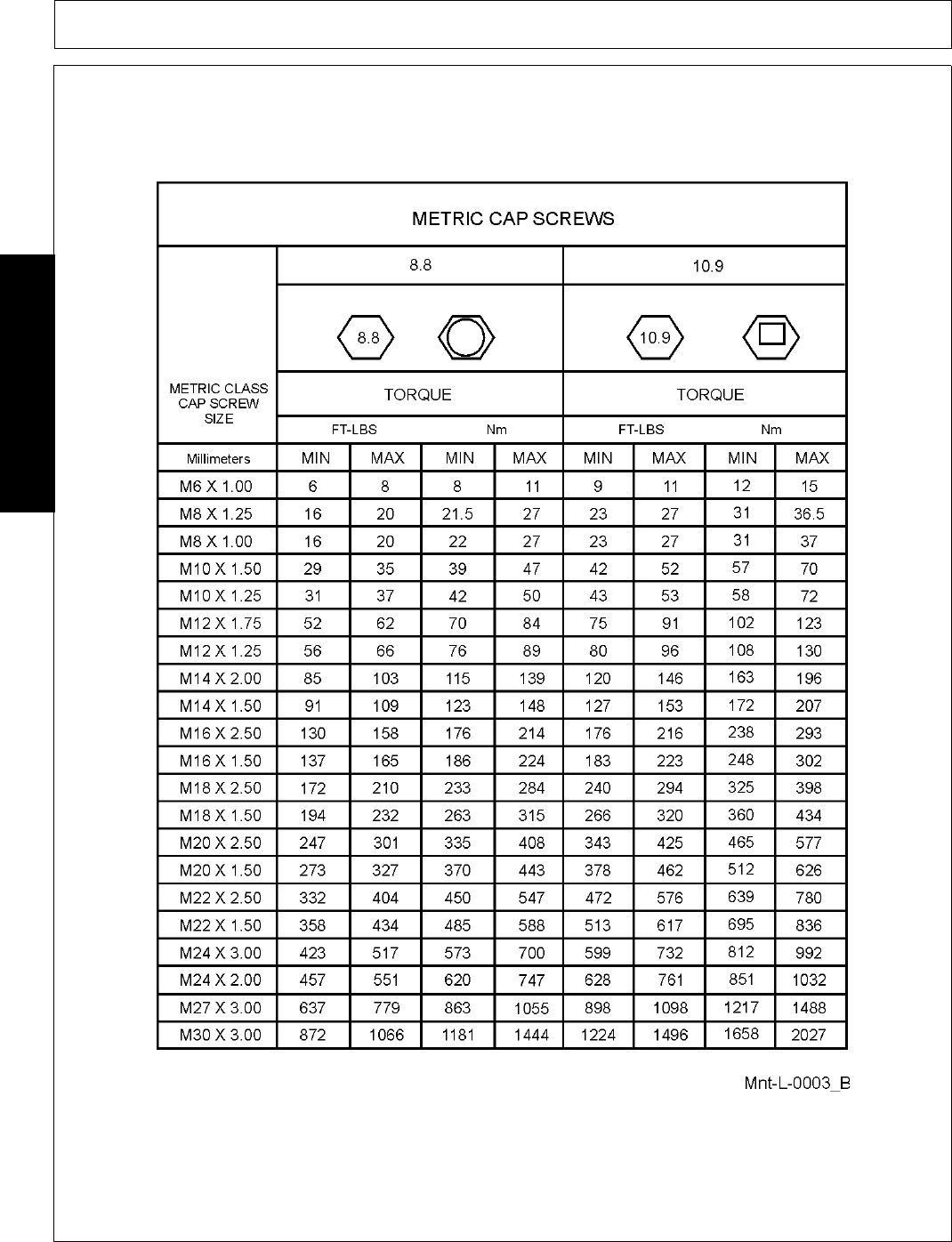 NOTE: These values apply to fasteners as received from supplier, dry or when lubricated with normal engine