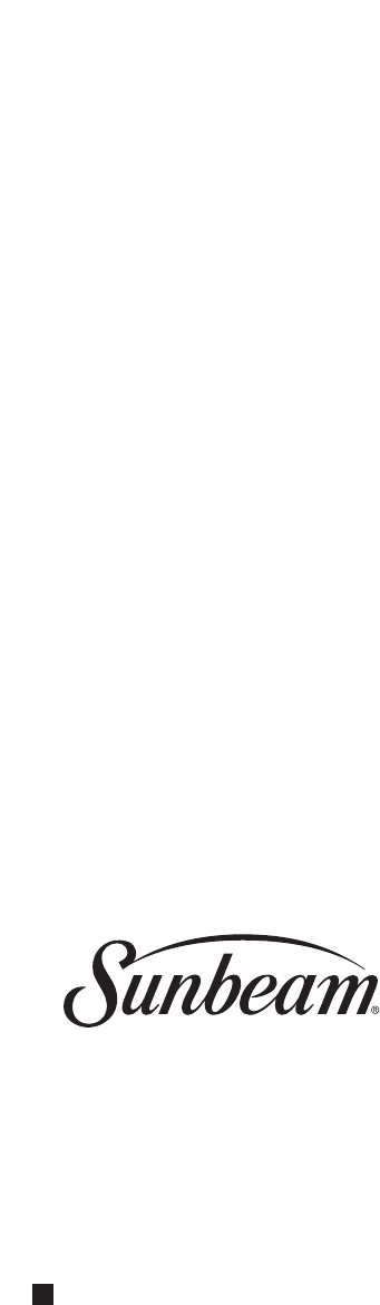 contact Sunbeam Consumer Care at: (800) 892-7684.