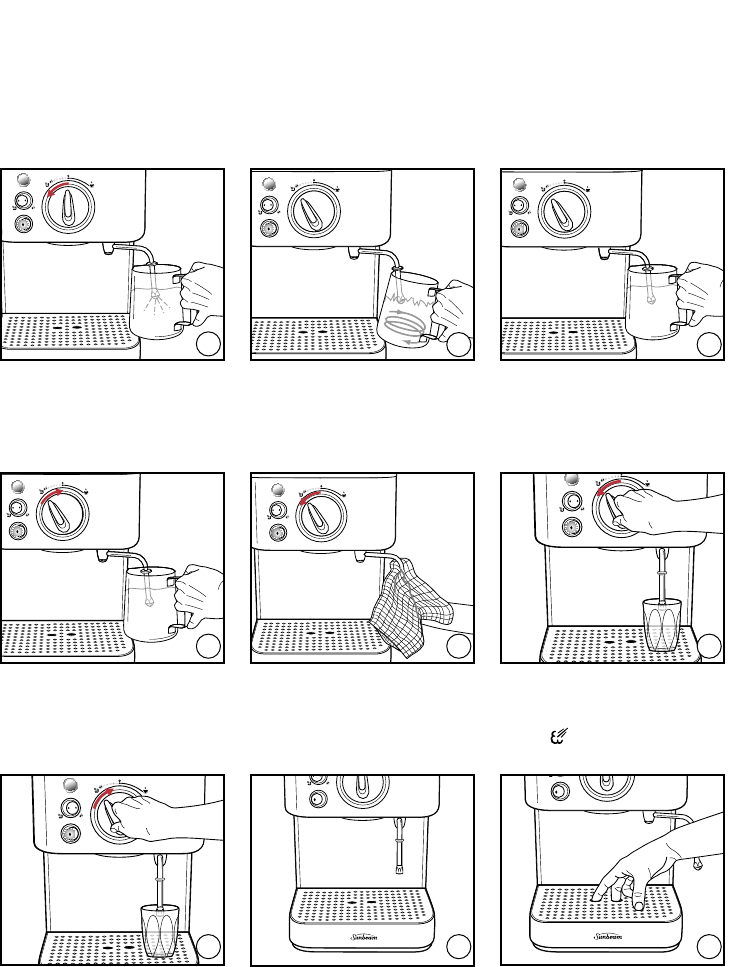No steam from the steam nozzle. Steam nozzle is blocked. See "Care & Cleaning" pg 20.