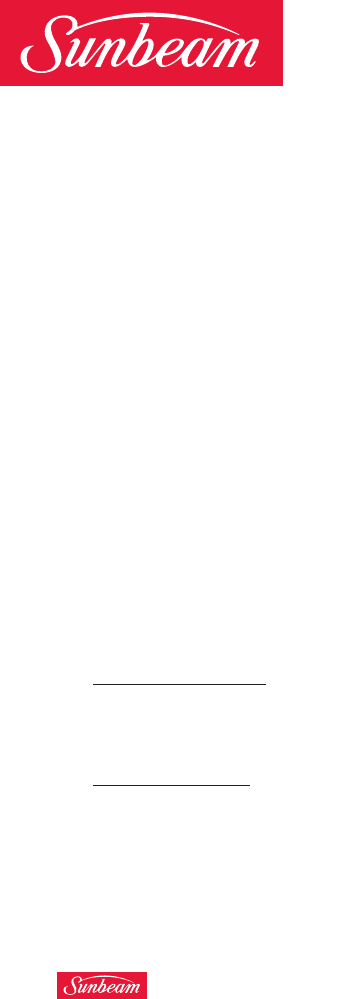 please visit www.sunbeam.com.au or contact the Sunbeam Consumer Service Line.