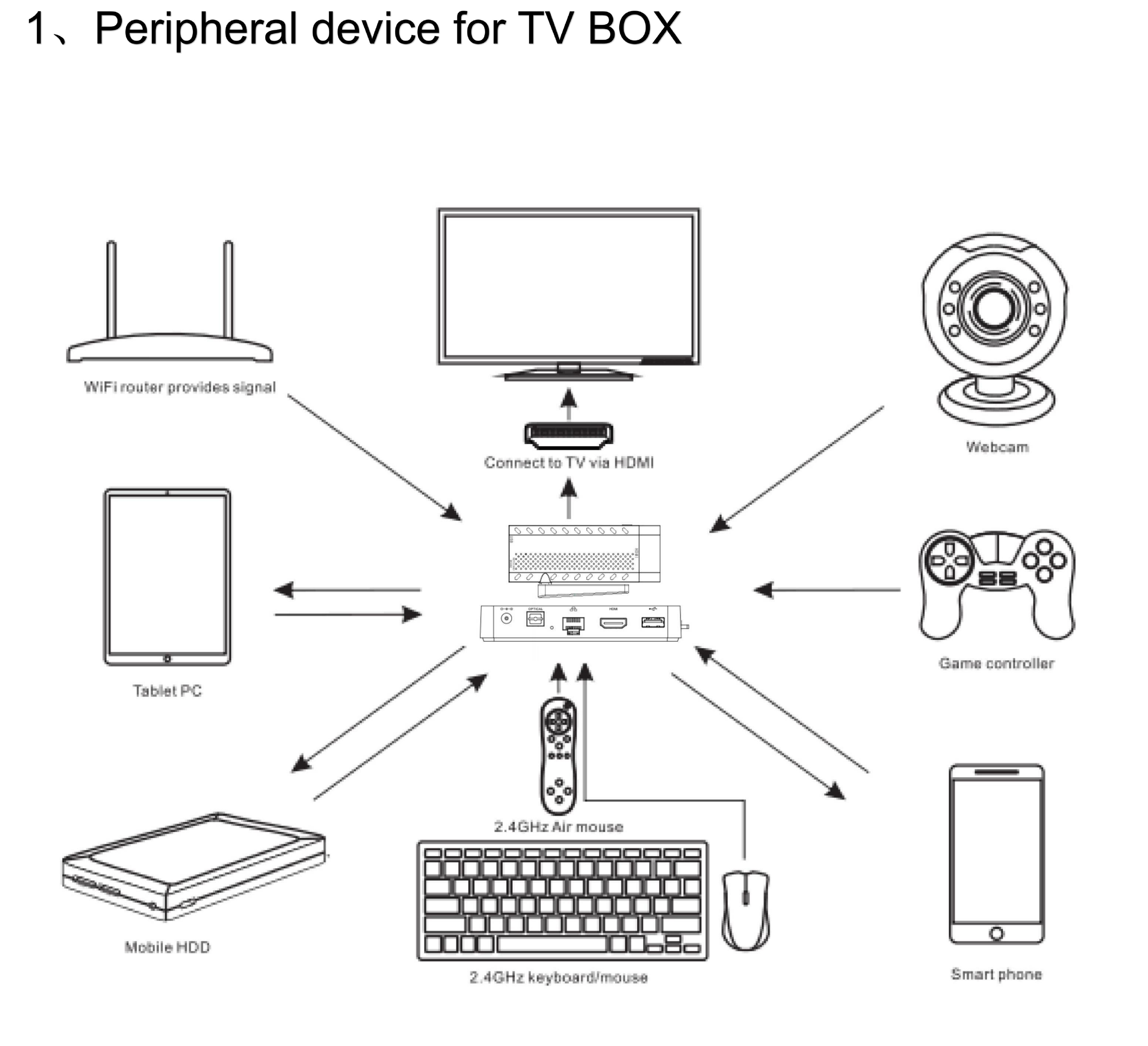1. Turn on TV or Display screen, turn video output mode to HDMI .