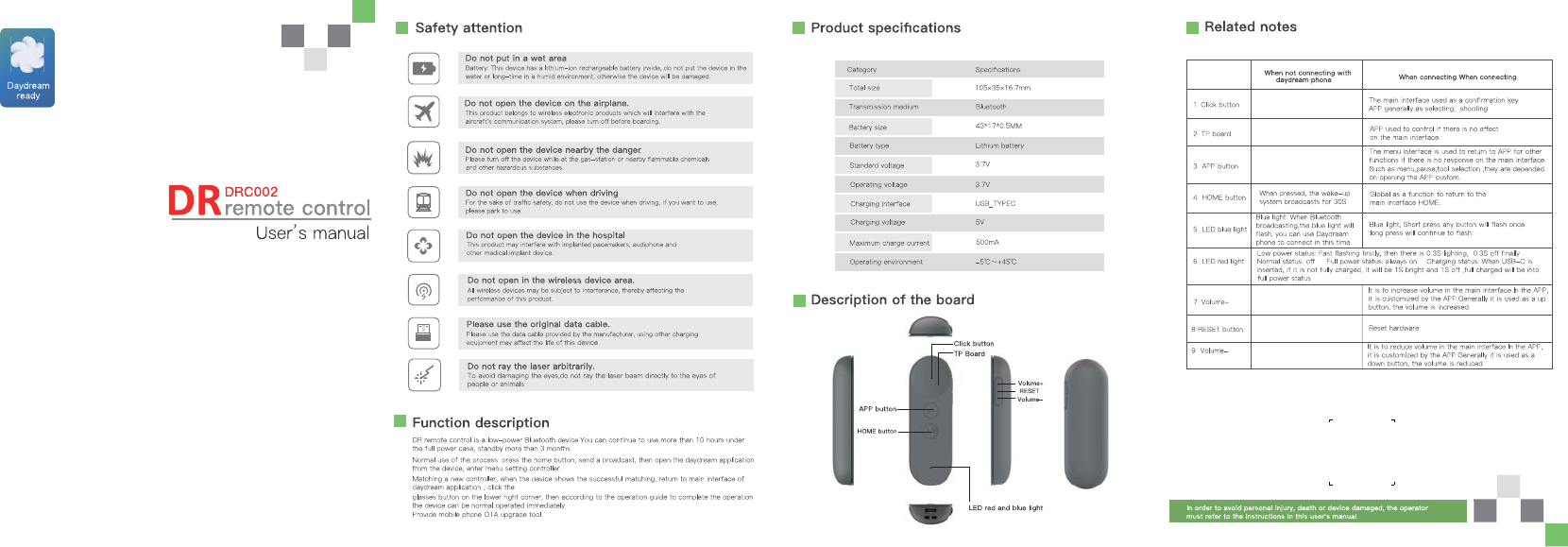 Sunchip Technology DRC003 Sunchip VR controller User Manual