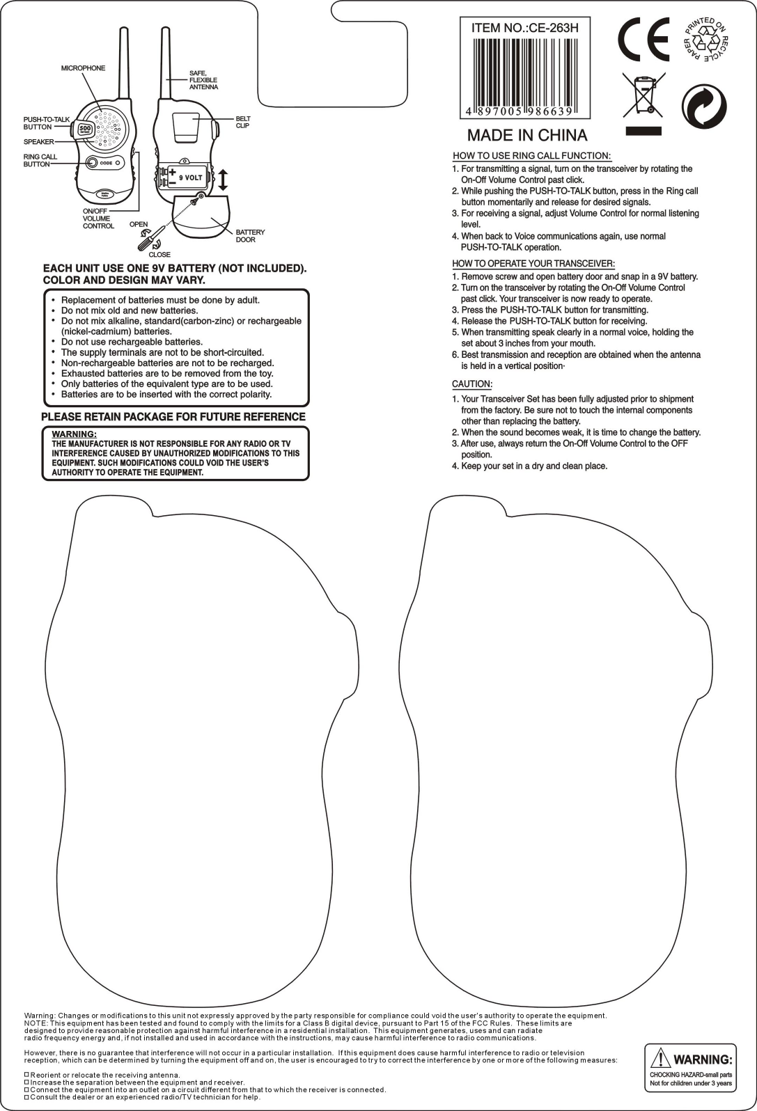 Sunco CE-263H 500 Metres Walkie Talkie User Manual