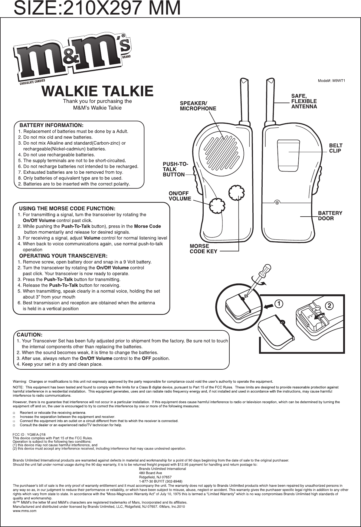 Sunco EA-218 Walkie Talkie User Manual EA 218