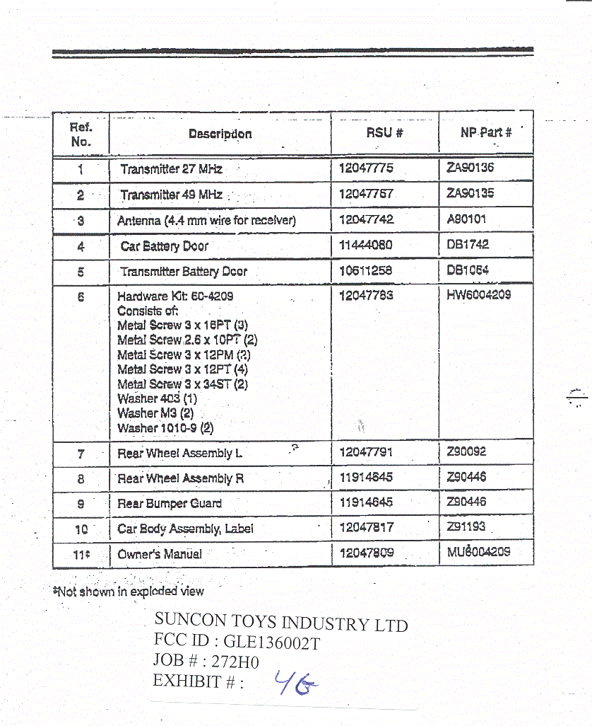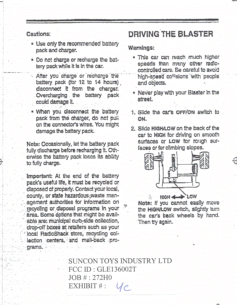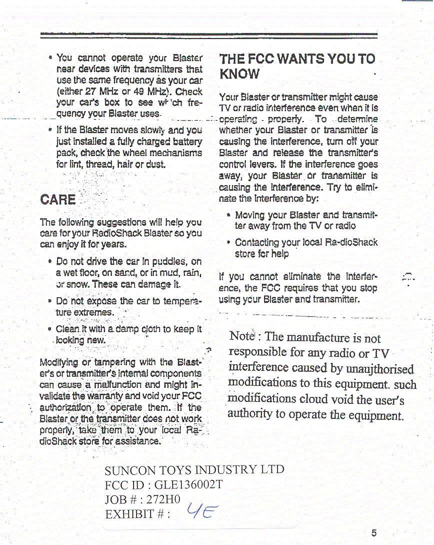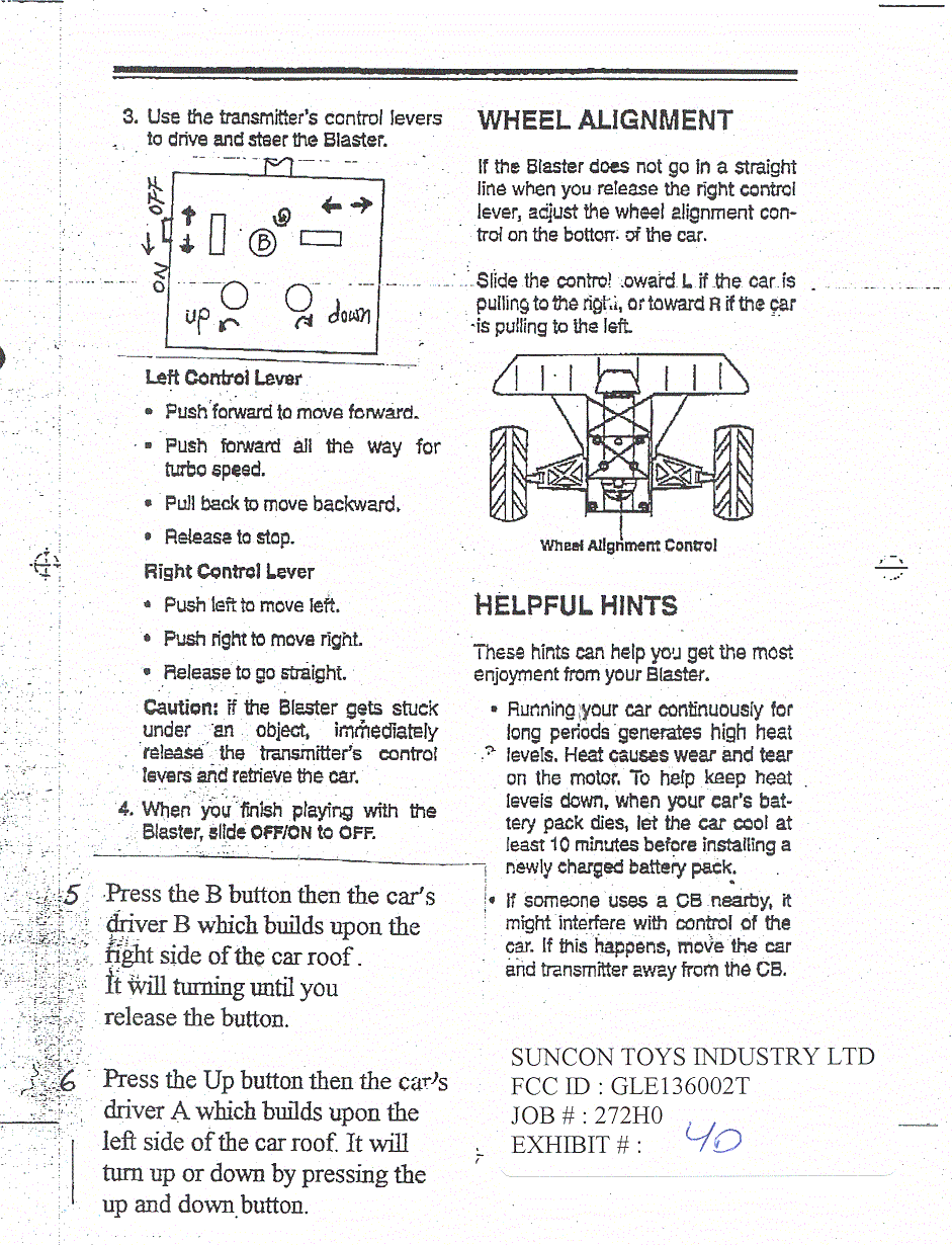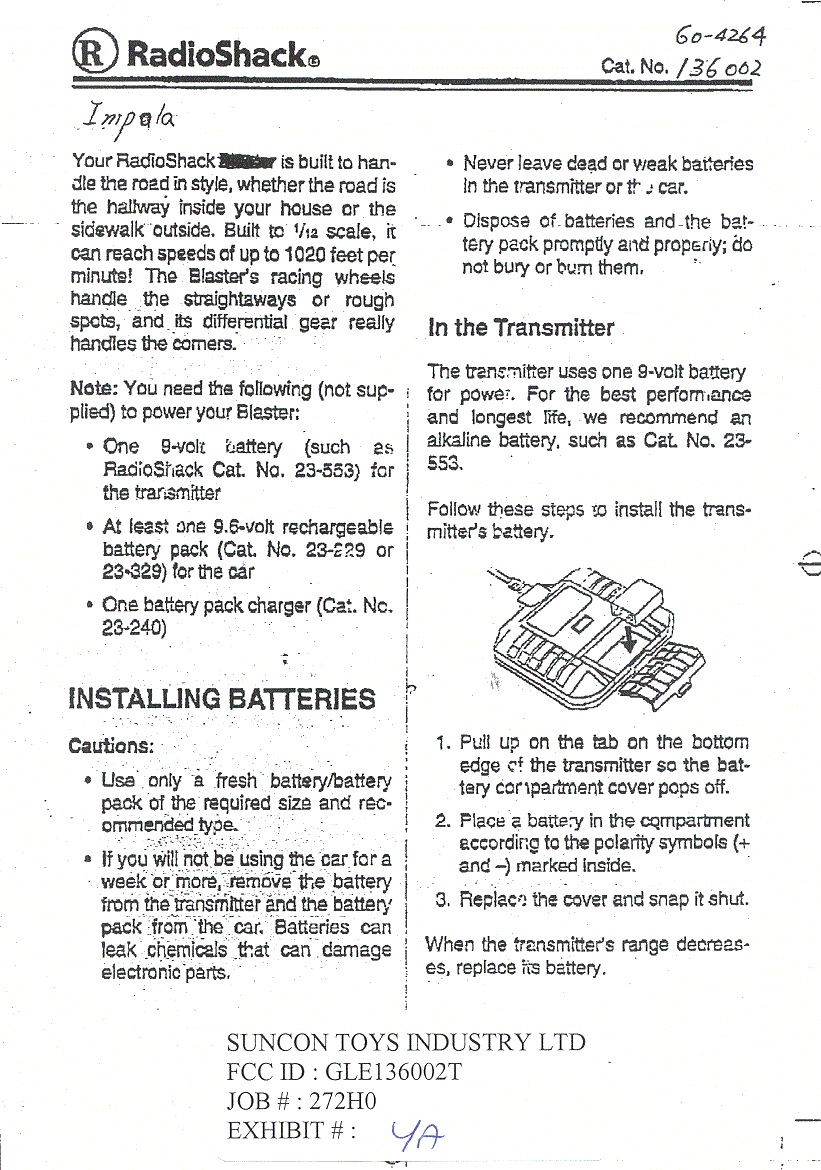 Suncon Toys Industry 136002T 49 MHz Remote Control Transmitter User Manual users manual