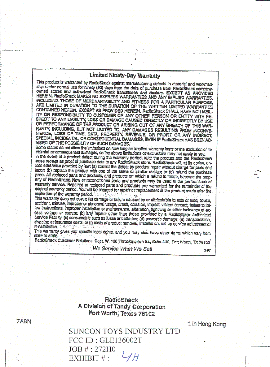 Suncon Toys Industry Ltd 49 MHz Remote Control Transmitter users manual