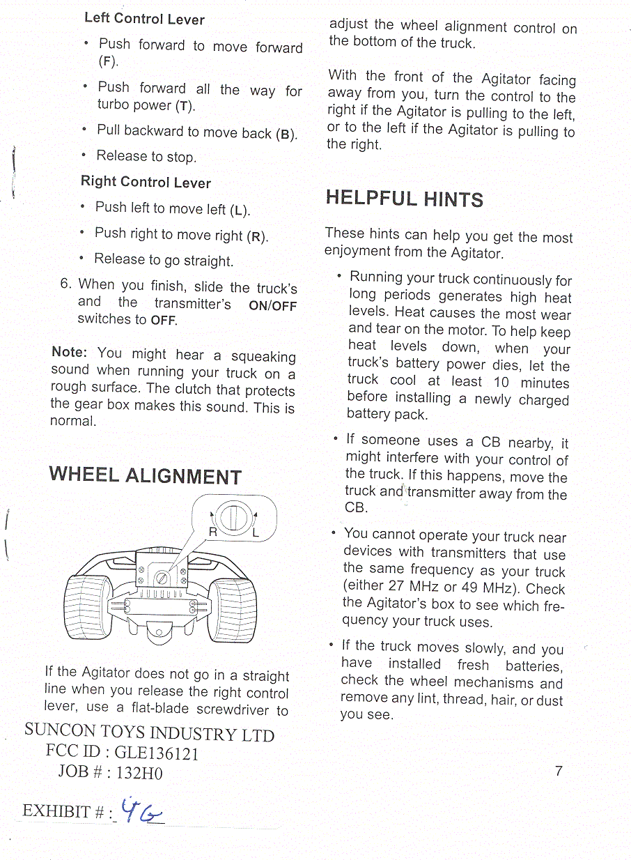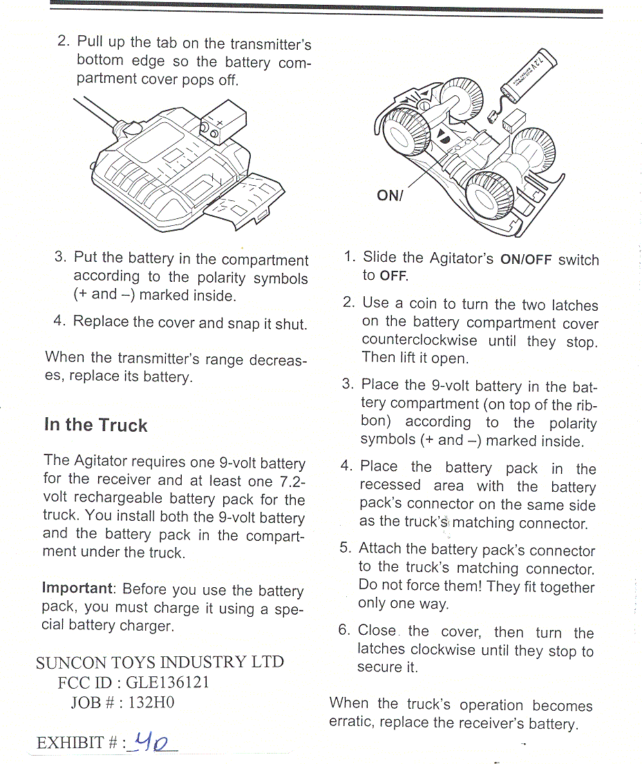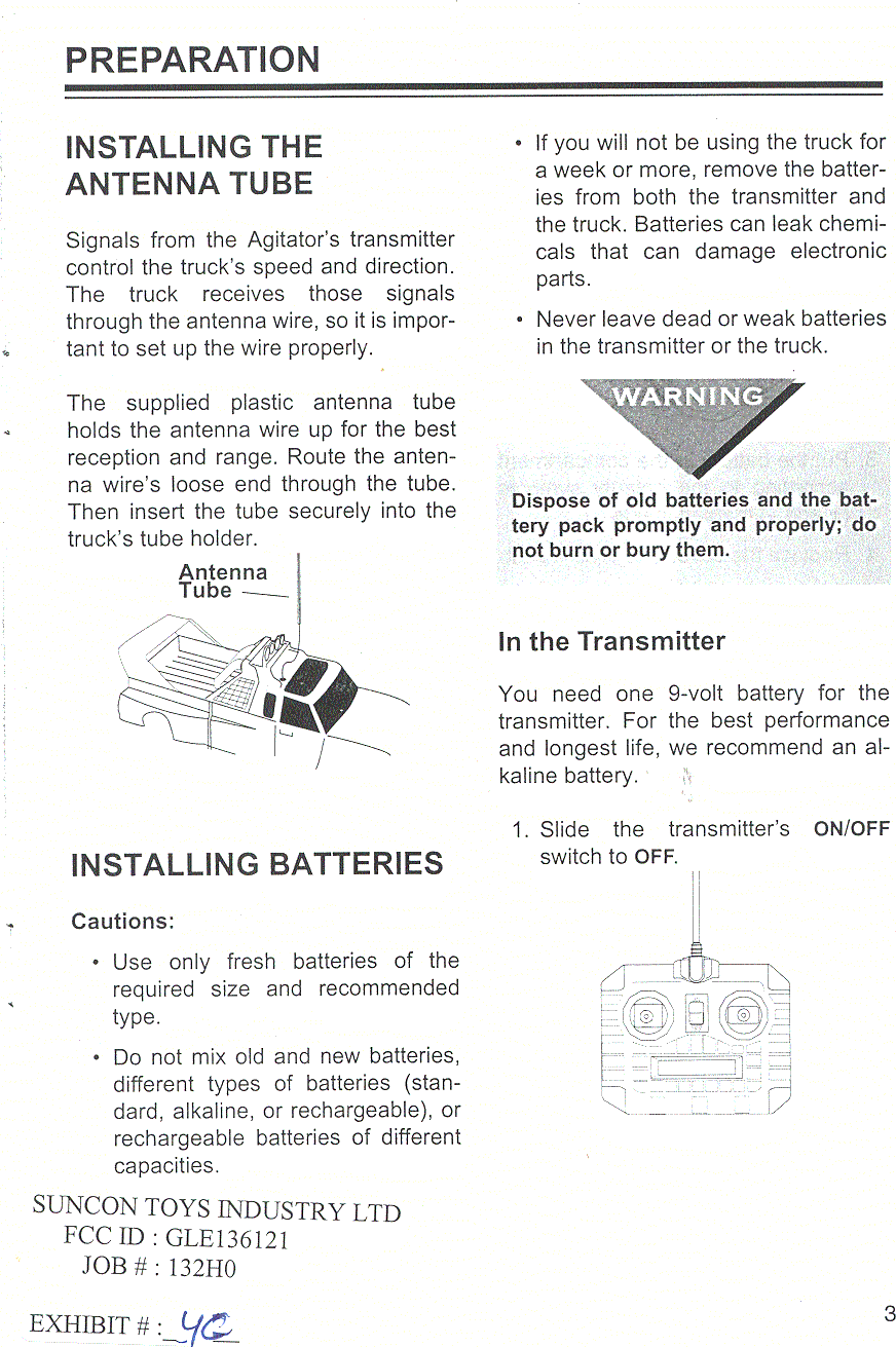 Suncon Toys Industry 136121 27 MHz remote control transmitter User Manual instruction manual