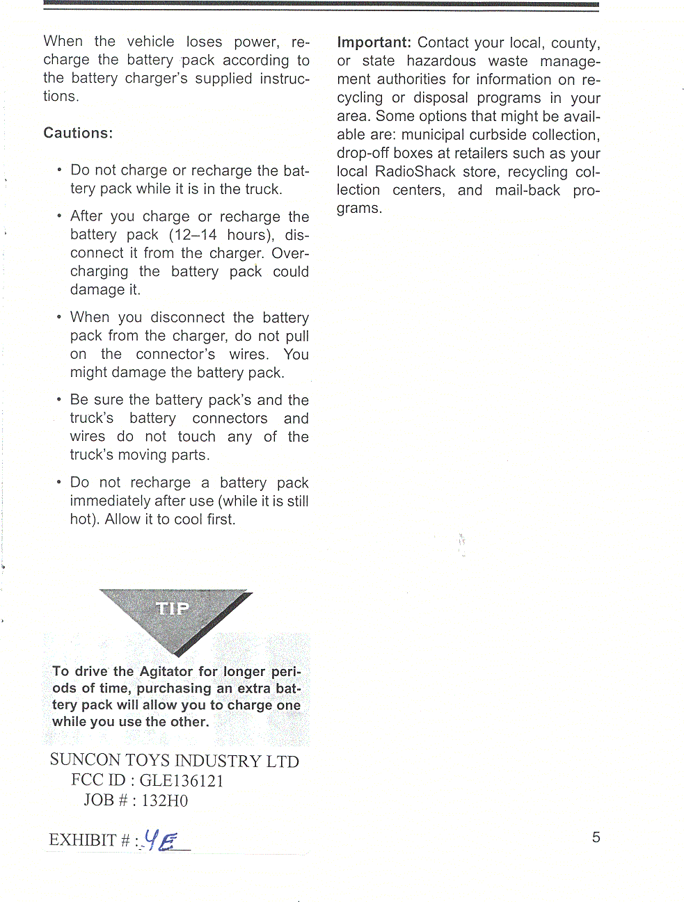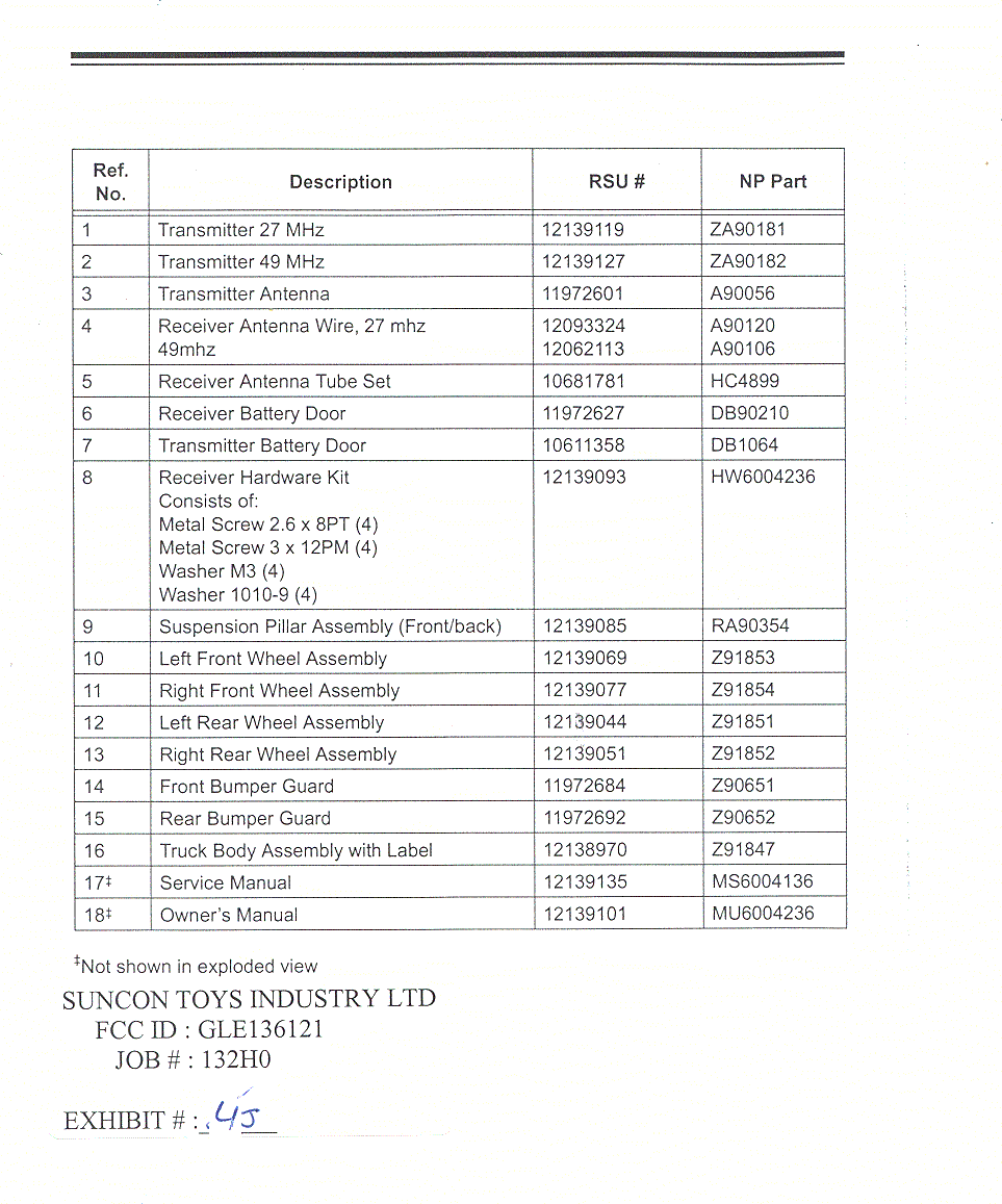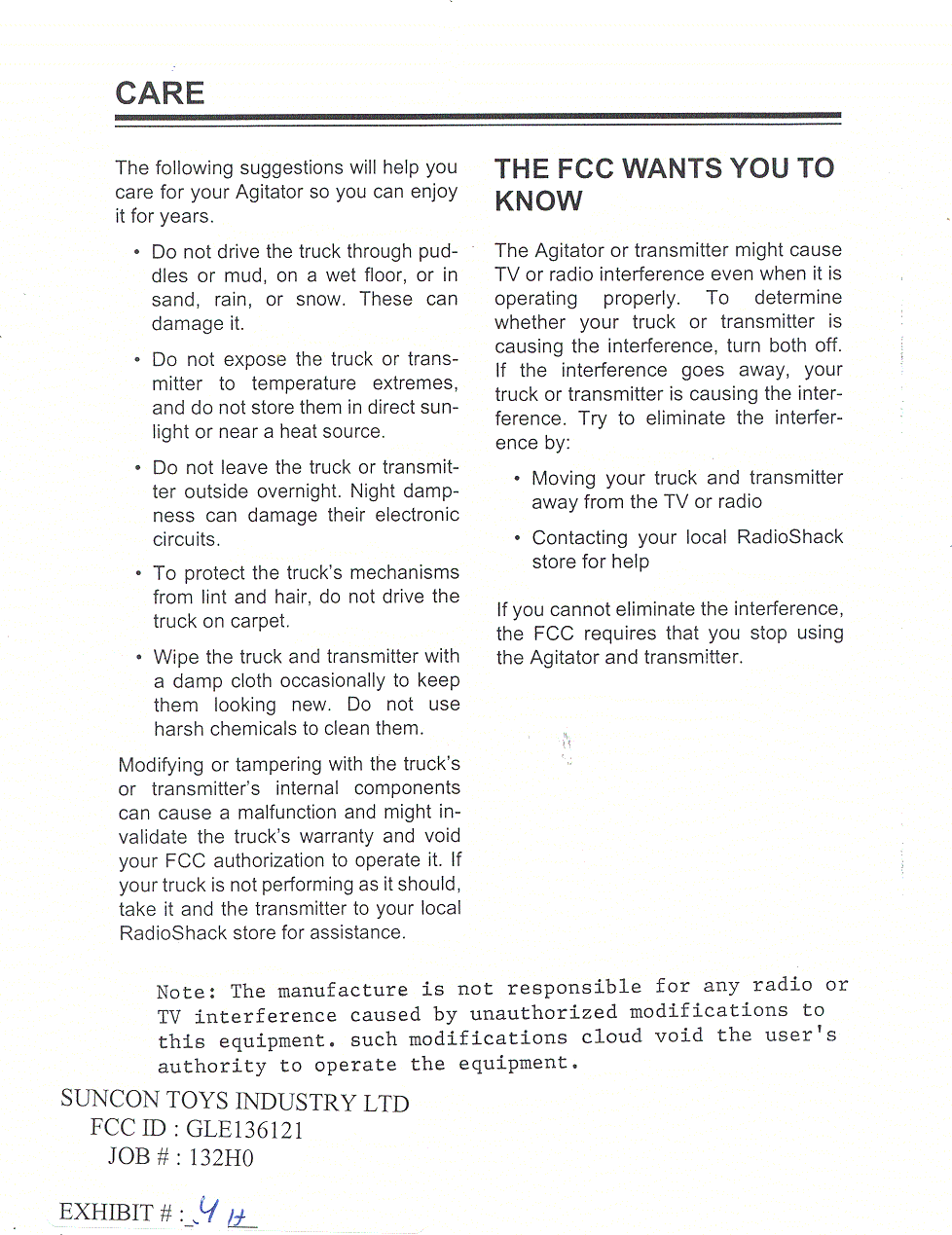 Suncon Toys Industry 136121 27 MHz remote control transmitter User Manual instruction manual