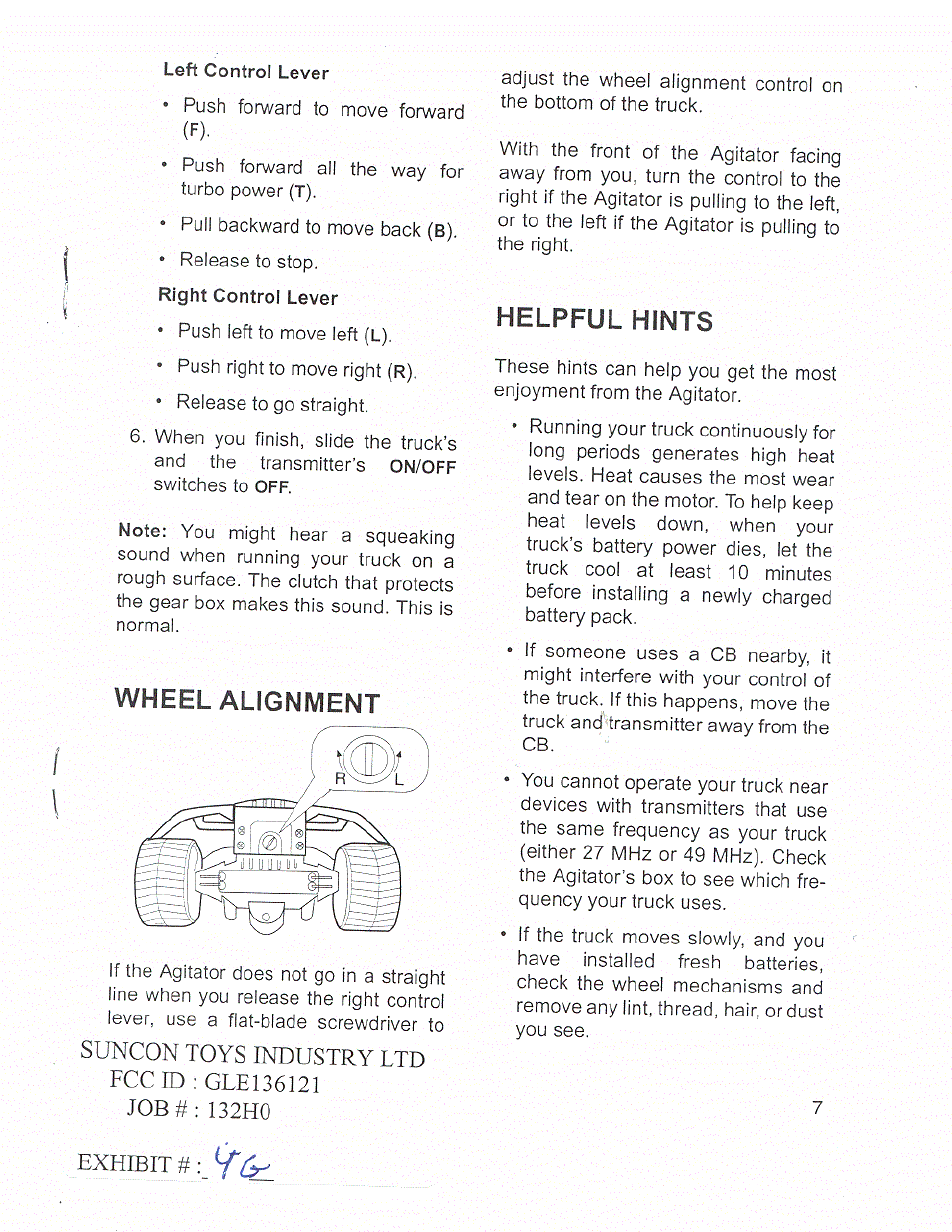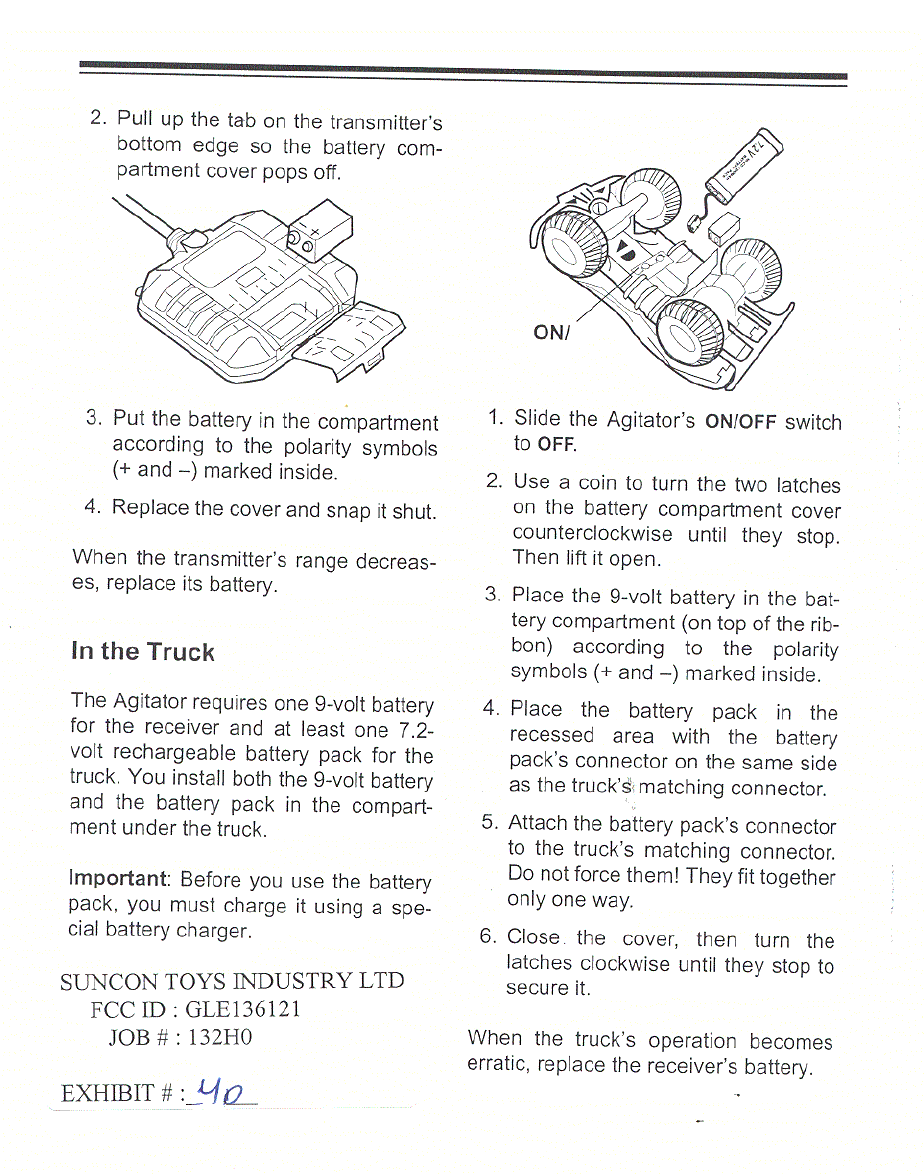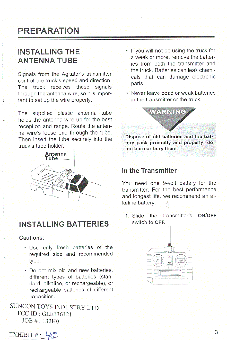 Suncon Toys Industry 136121 27 MHz remote control transmitter User Manual instruction manual