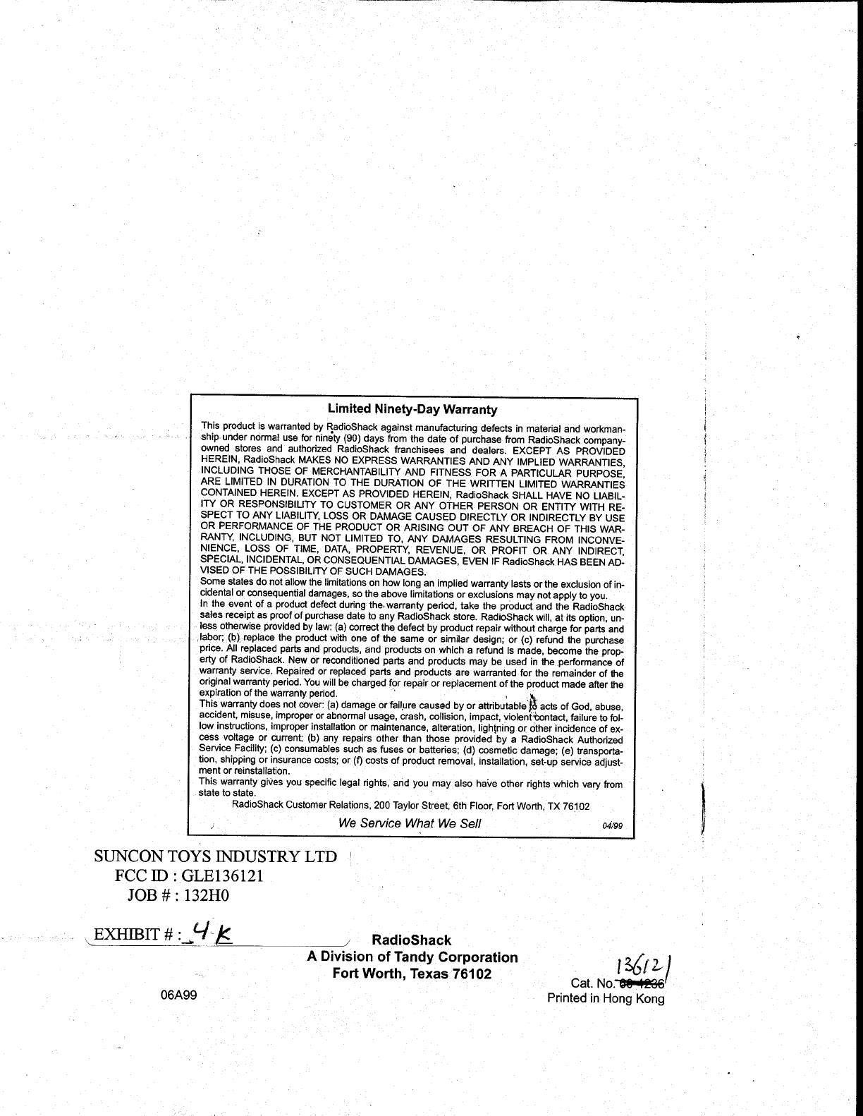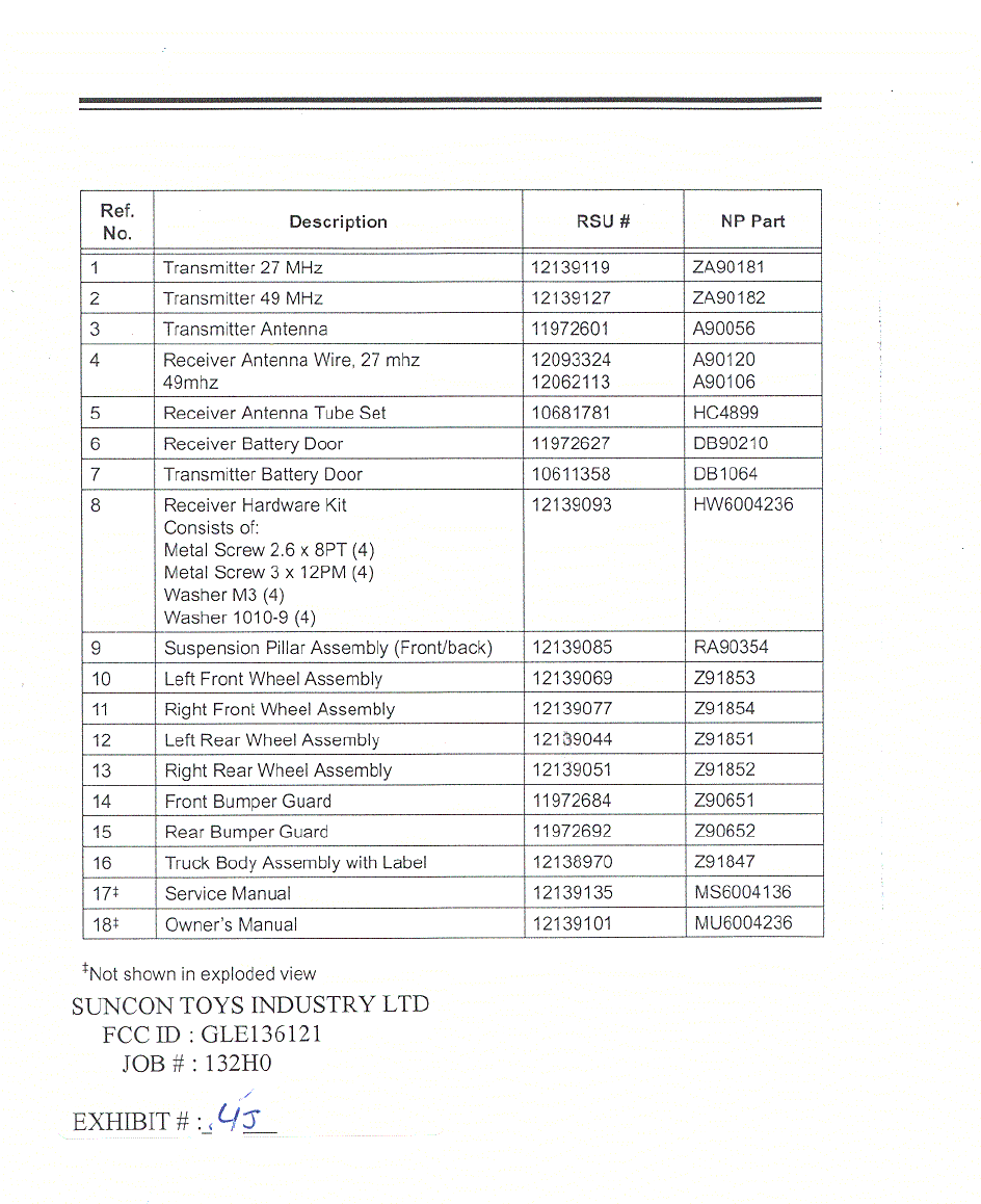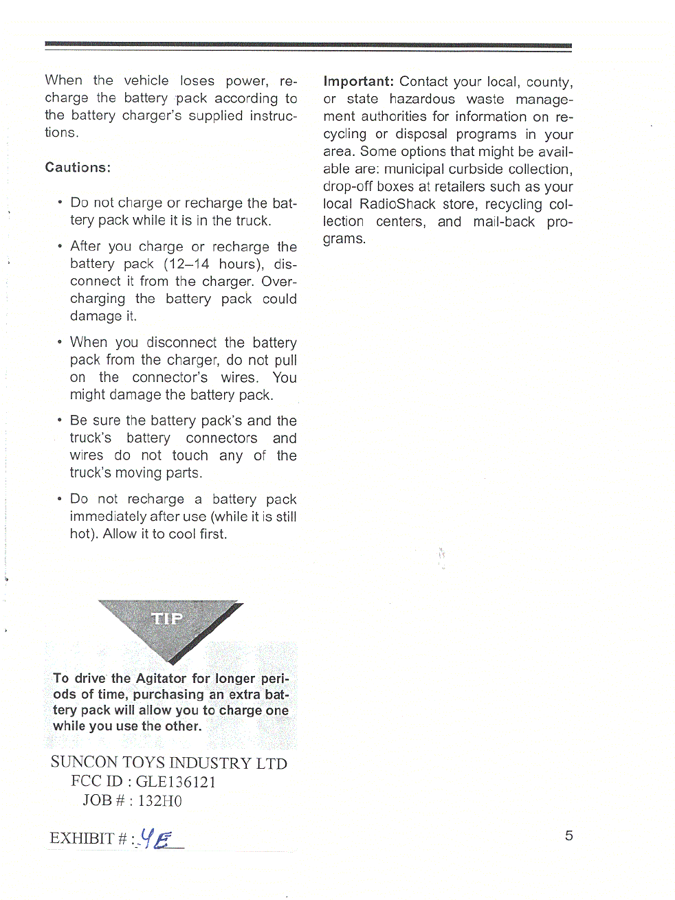 Suncon Toys Industry 136121 27 MHz remote control transmitter User Manual instruction manual