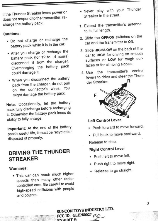 Suncon Toys Industry Ltd 27 MHz R/C TRANSMITTER USERS MANUAL PAGE THREE
