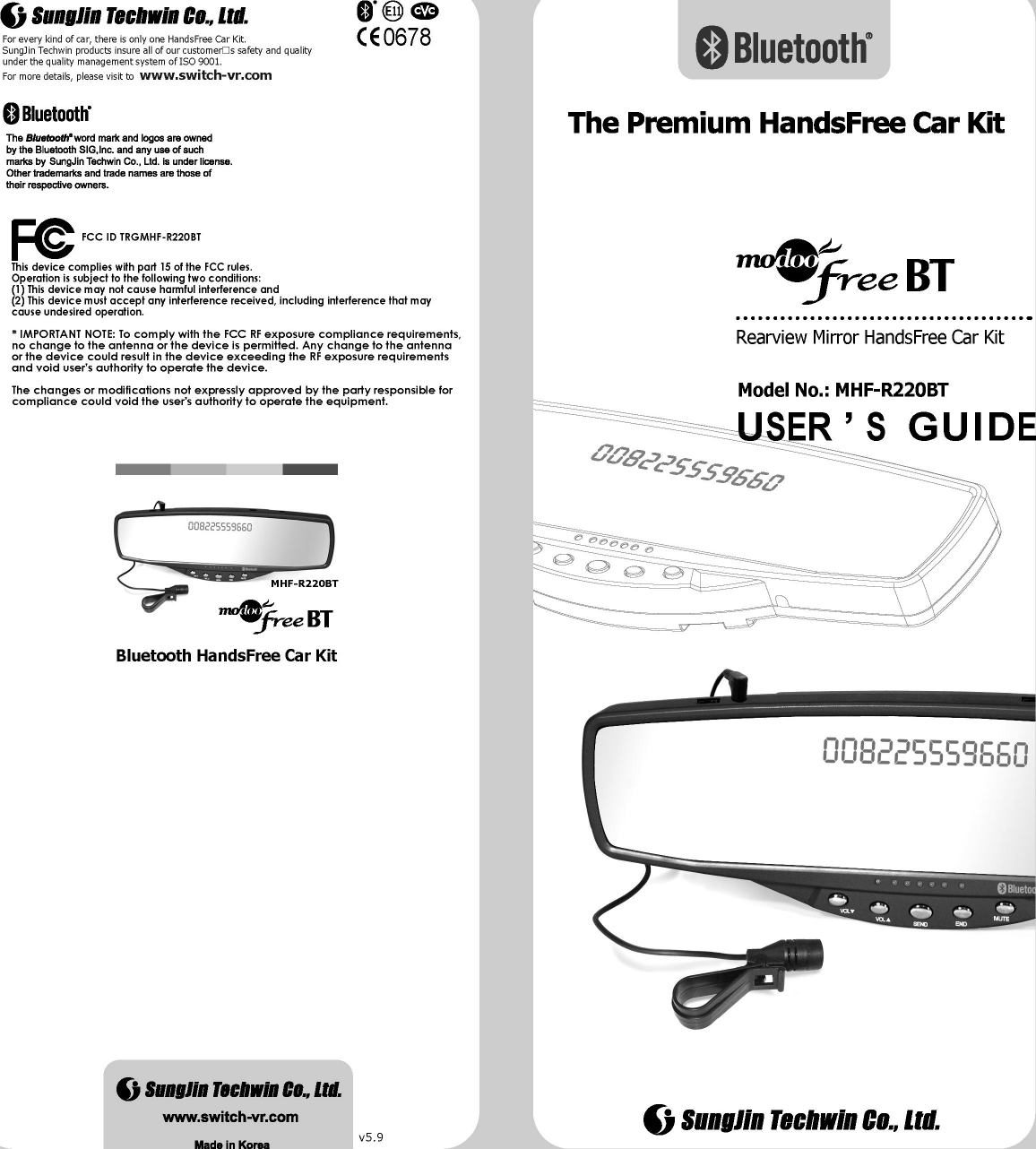 Sungjin Techwin MHF-R220BT BLUETOOTH REARVIEW MIRROR HANDS-FREE CAR KIT User Manual 1 of 2