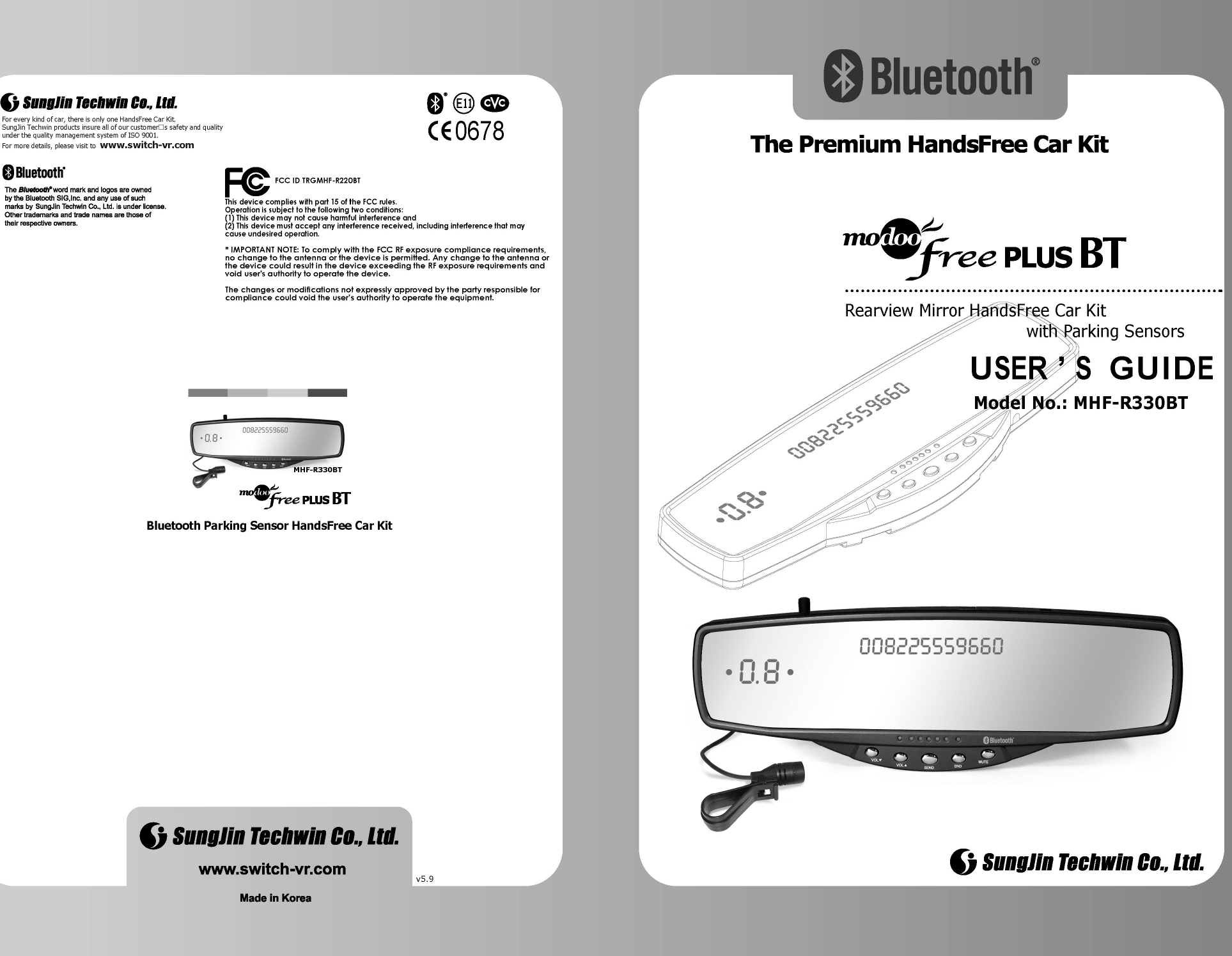 Sungjin Techwin MHF-R330BT BLUETOOTH REARVIEW MIRROR HANDS-FREE CAR KIT User Manual 1 of 2