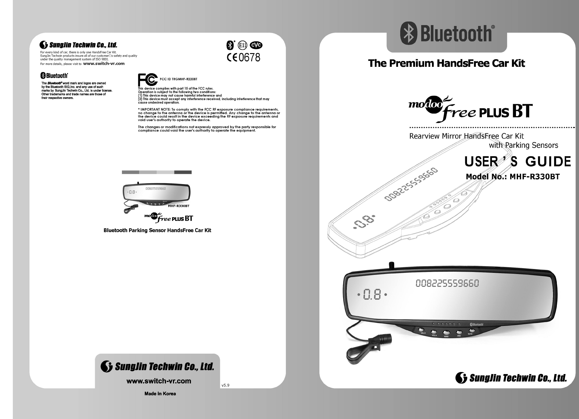 Sungjin Techwin MHF-R330BT BLUETOOTH REARVIEW MIRROR HANDS-FREE CAR KIT User Manual 1 of 2