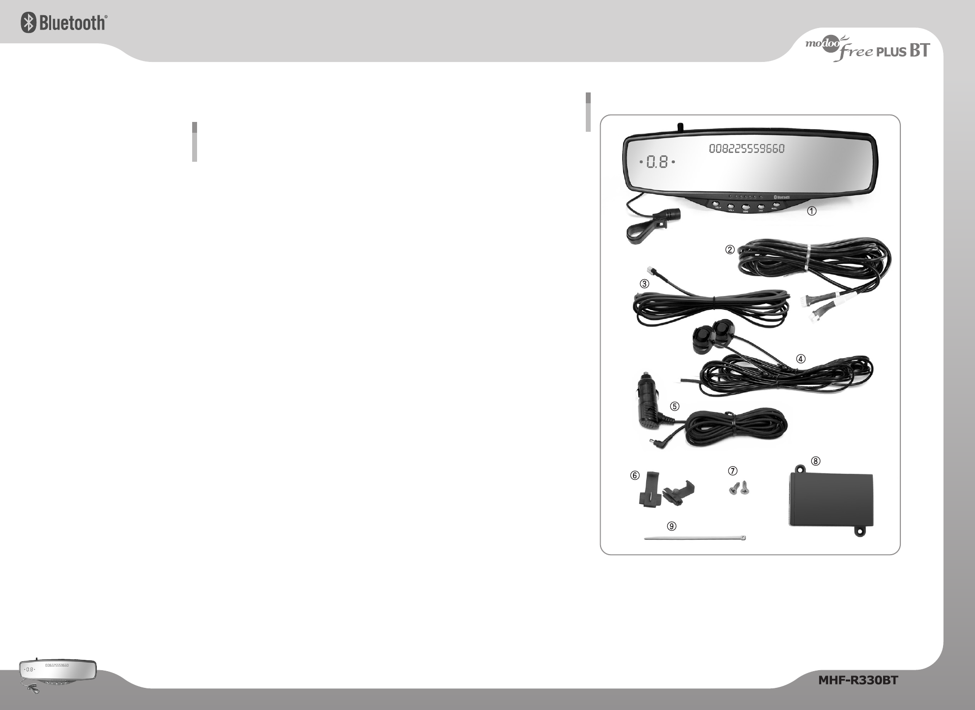 ①Main Body (Modoofree Plus BT ; MHF-R330BT) ②Main Cable (for Parking Sensor)