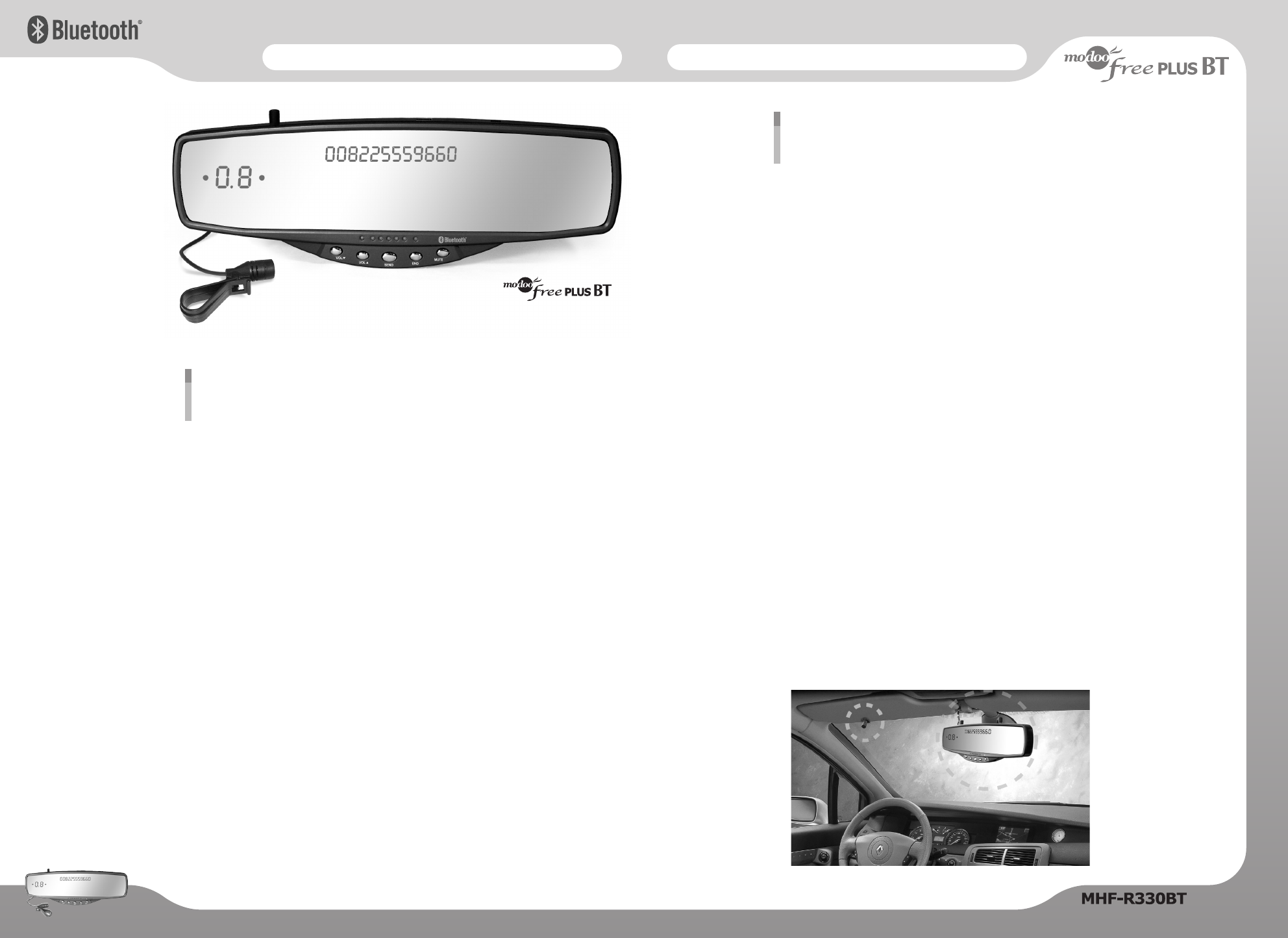 The ModooFree Plus BT(MHF-R330BT ; Rearview Mirror HandsFree Car Kit) is