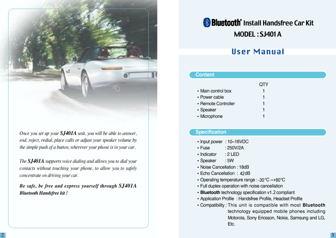 Sungjin Techwin SJ401A Bluetooth Handsfree Carkit User Manual