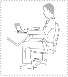 back-support chair, sit straight, thighs parallel with the floor, feet naturally set on