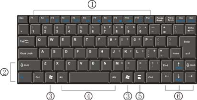 keys inverted T-seven hotkey, 12 function keys and numeric keypad.