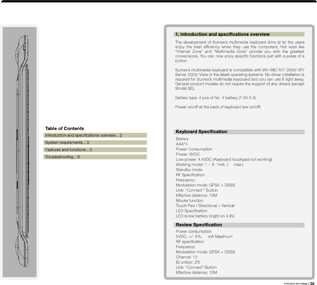 Sunrex Technology RK635A Wireless Keyboard User Manual Manual 971031