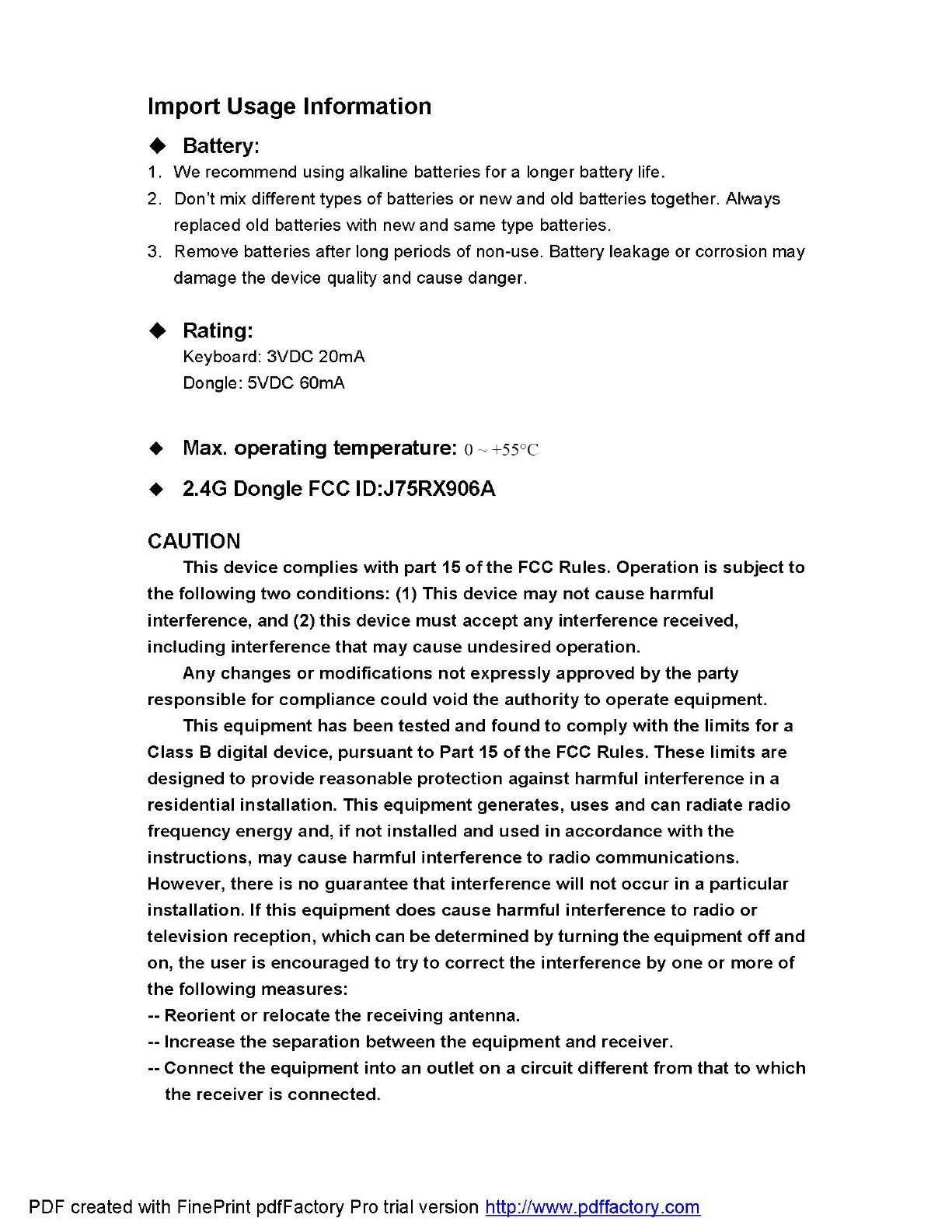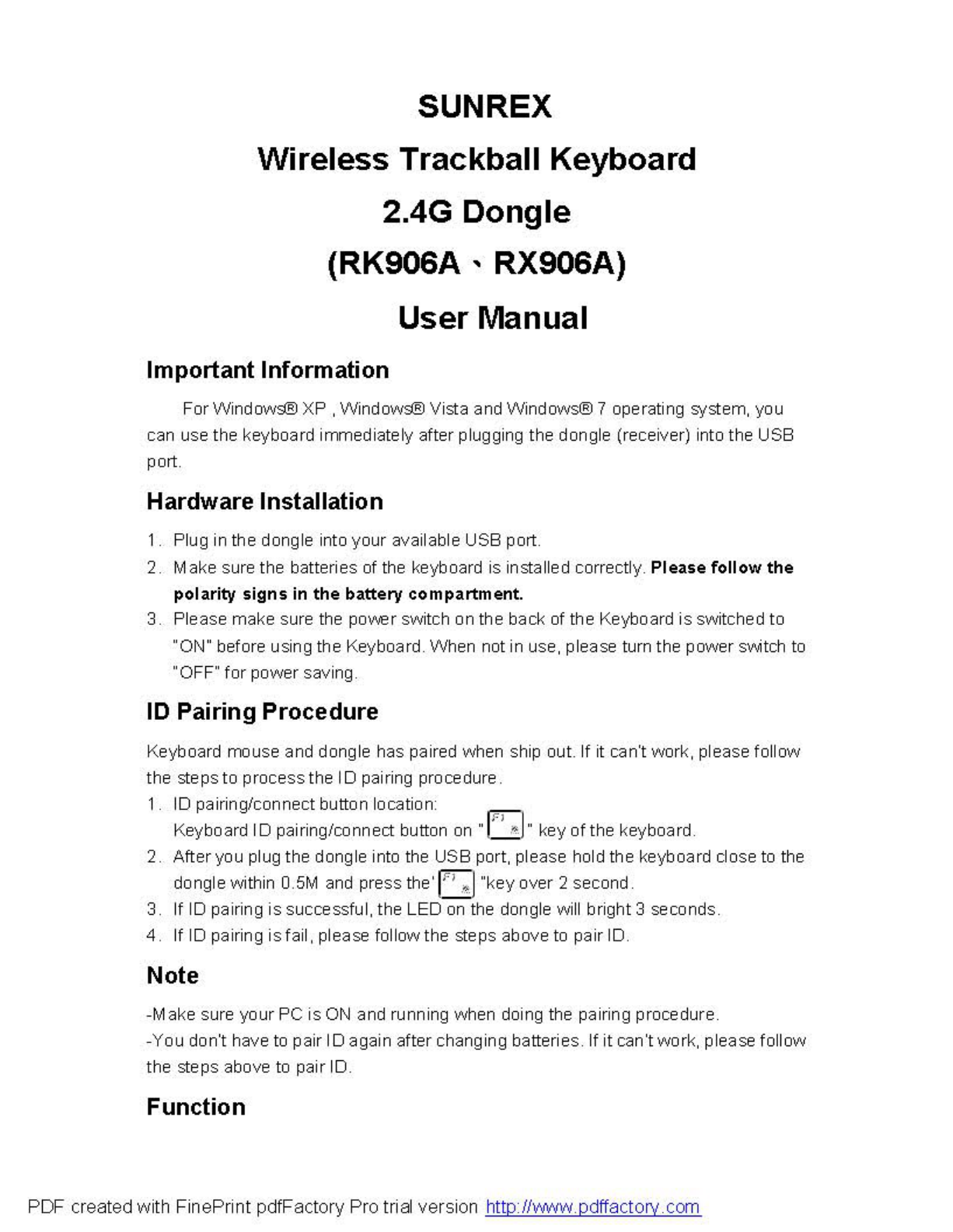 Sunrex Technology RX906A 2.4G Dongle User Manual