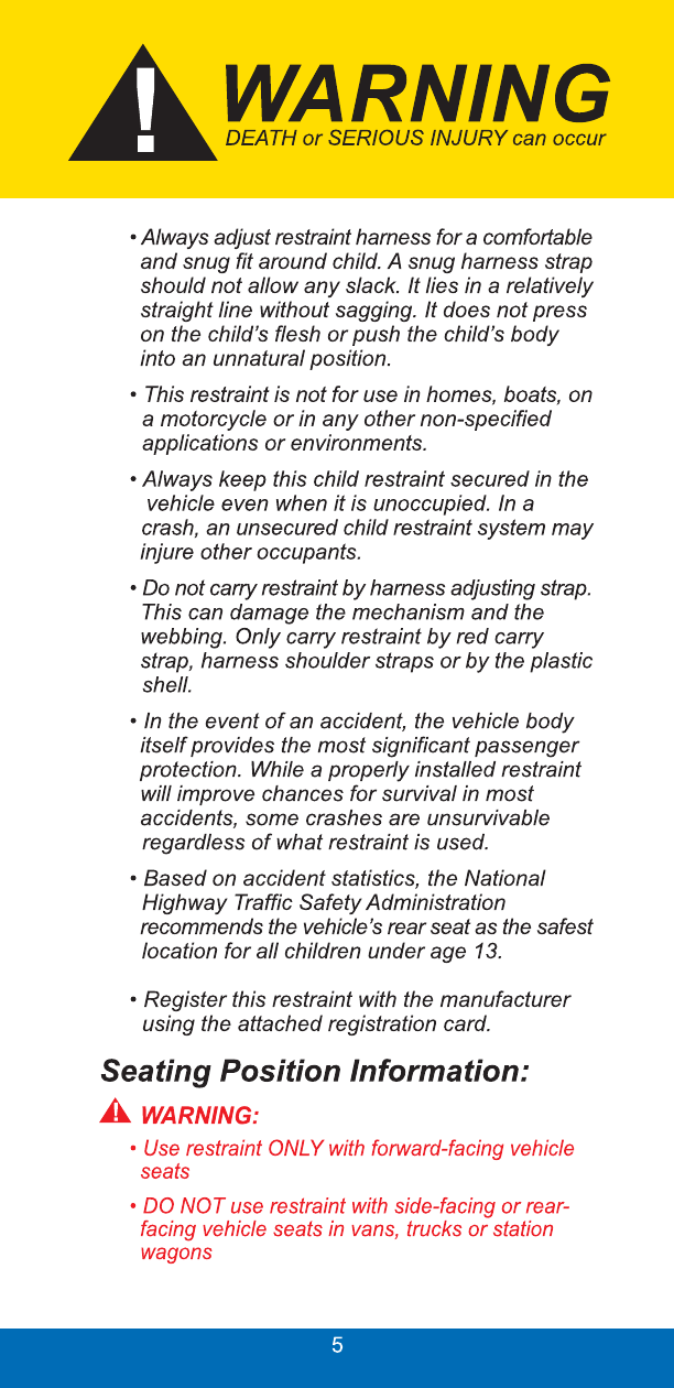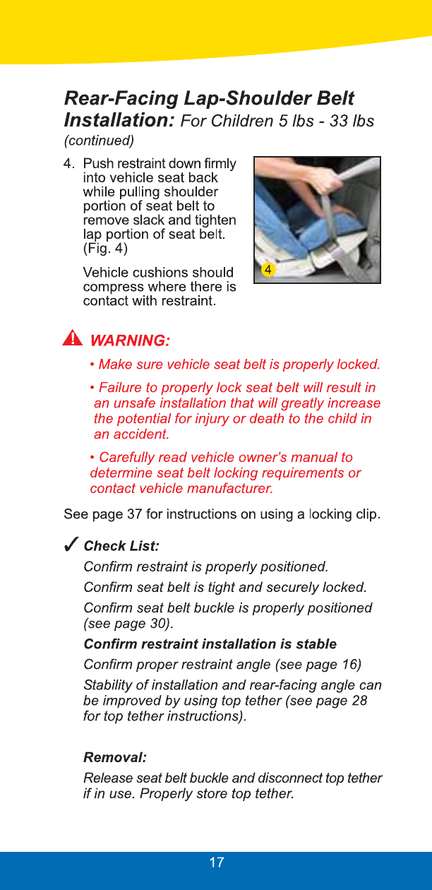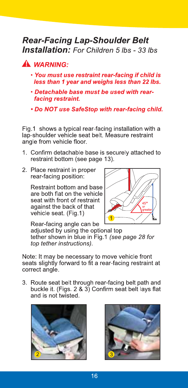 Rear-facing Lap-Shoulder Belt installation 5 to 33 lbs. 16