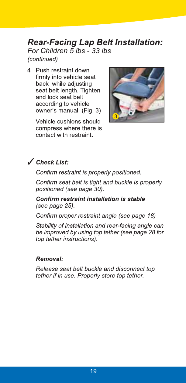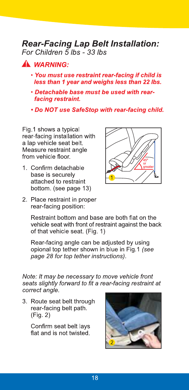 Rear-facing Lap Belt installation 5 to 33 lbs. 18