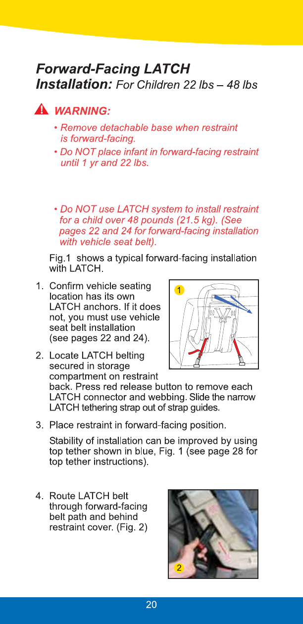 Forward-facing LATCH installation 22 to 48 lbs. 20