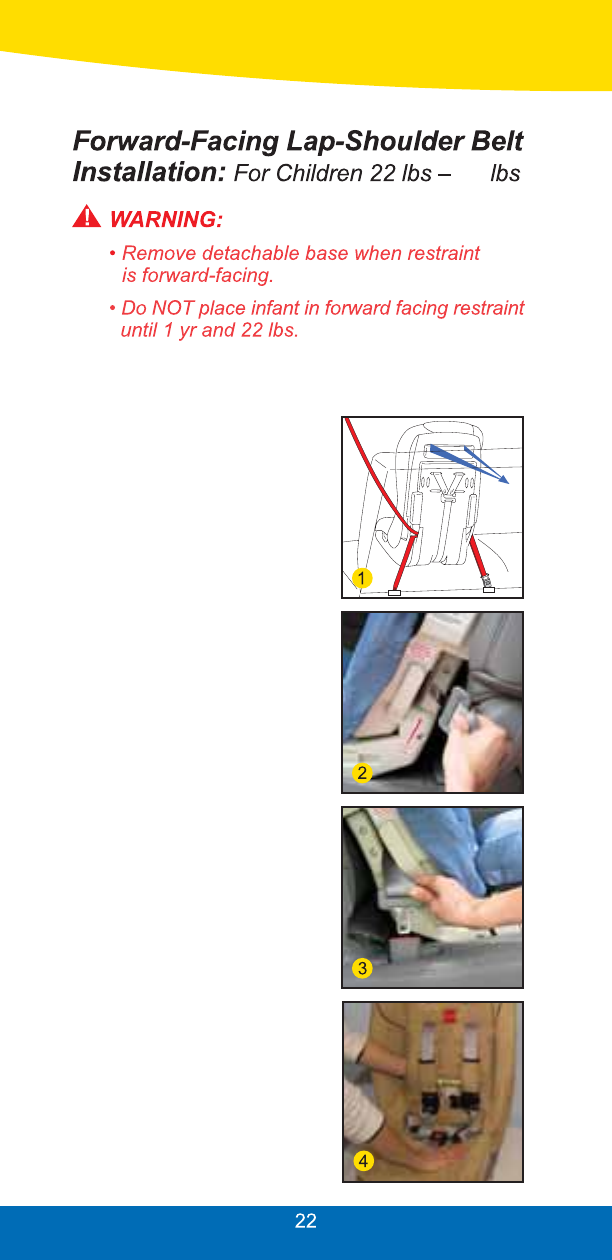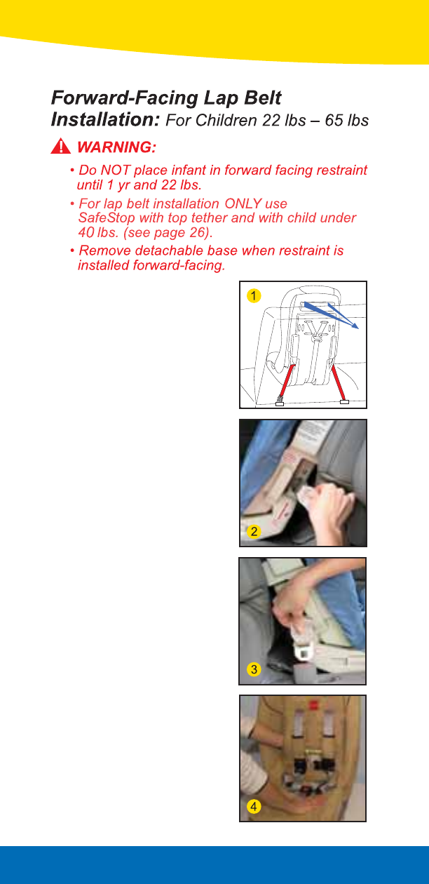 Forward-facing Lap Belt installation 22 to 65 lbs. 24