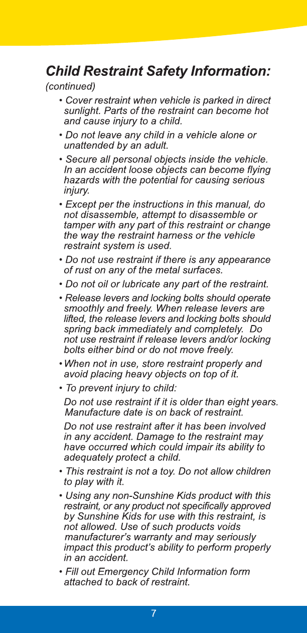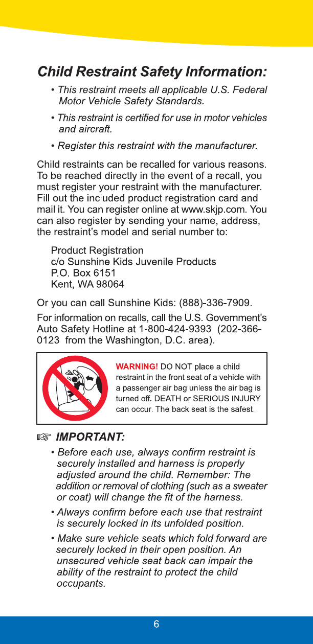 ©2006 Sunshine Kids Juvenile Products, LLC. All rights reserved.