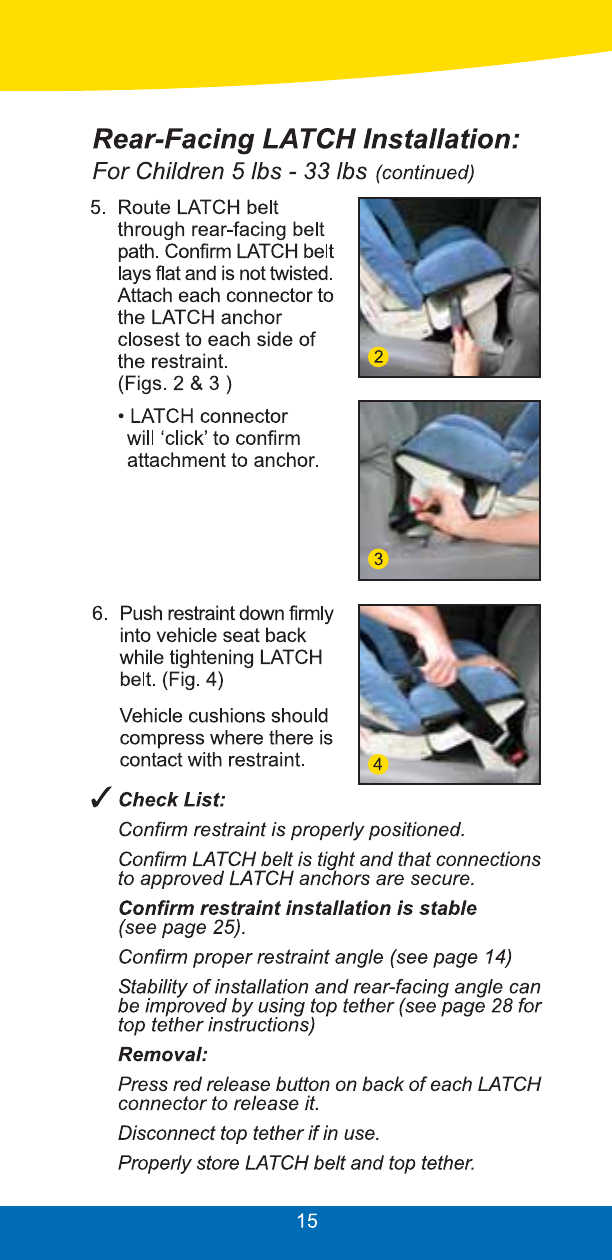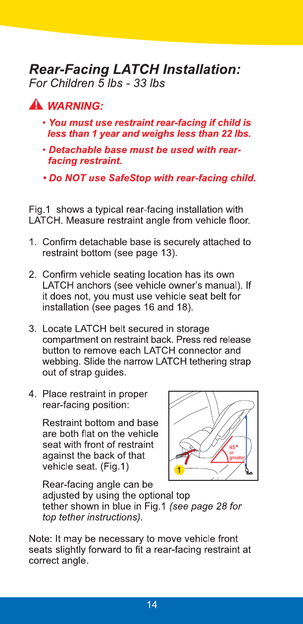 Rear-facing LATCH installation 5 to 33 lbs. 14