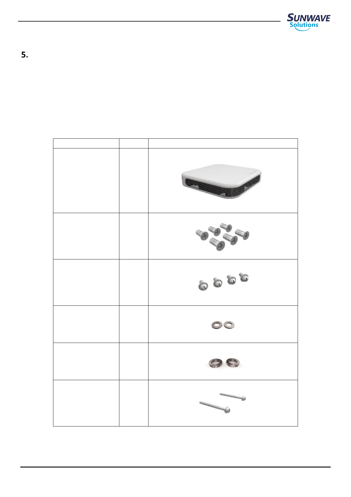 3. Ensure that all equipment and accessories have no damage. If there is any damage, contact your Sunwave service agent.