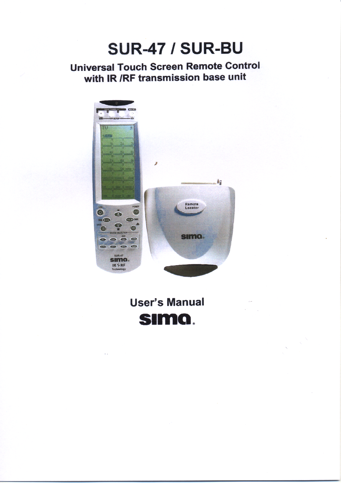This manual is designed to make using the SUR-47 Touch Screen Remote Control as easy as possible. Information in