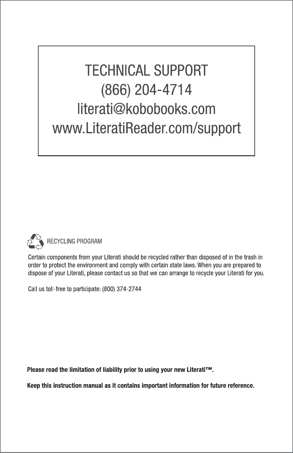 Sunway Electronics 16379831637980 E-Reader-TSI-White/Black User Manual LiteratiBlackCoverTSI IM OL ai