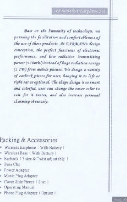Super Device Microelectronics Co., Ltd. Wireless Earphone Handset users manual