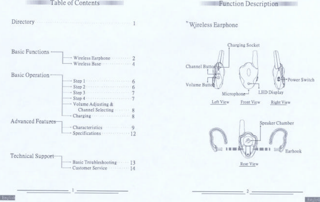 Super Device Microelectronics SD-200WE-1 Wireless Earphone Handset User Manual users manual